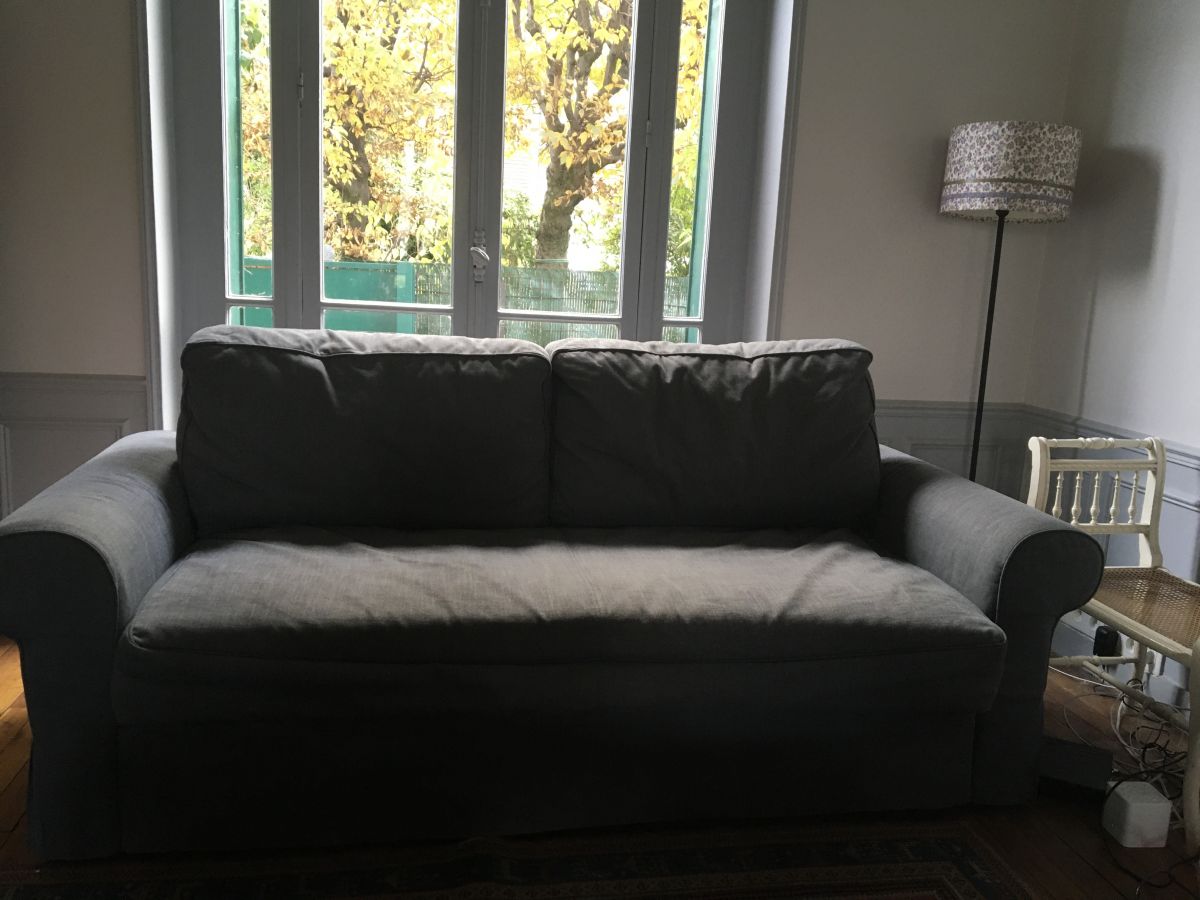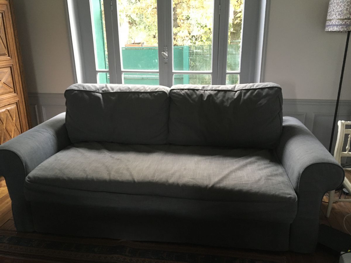 Cause déménagement je vends mon canapé convertible BACKABRO IKEA, excellent état. Gris anthracite.