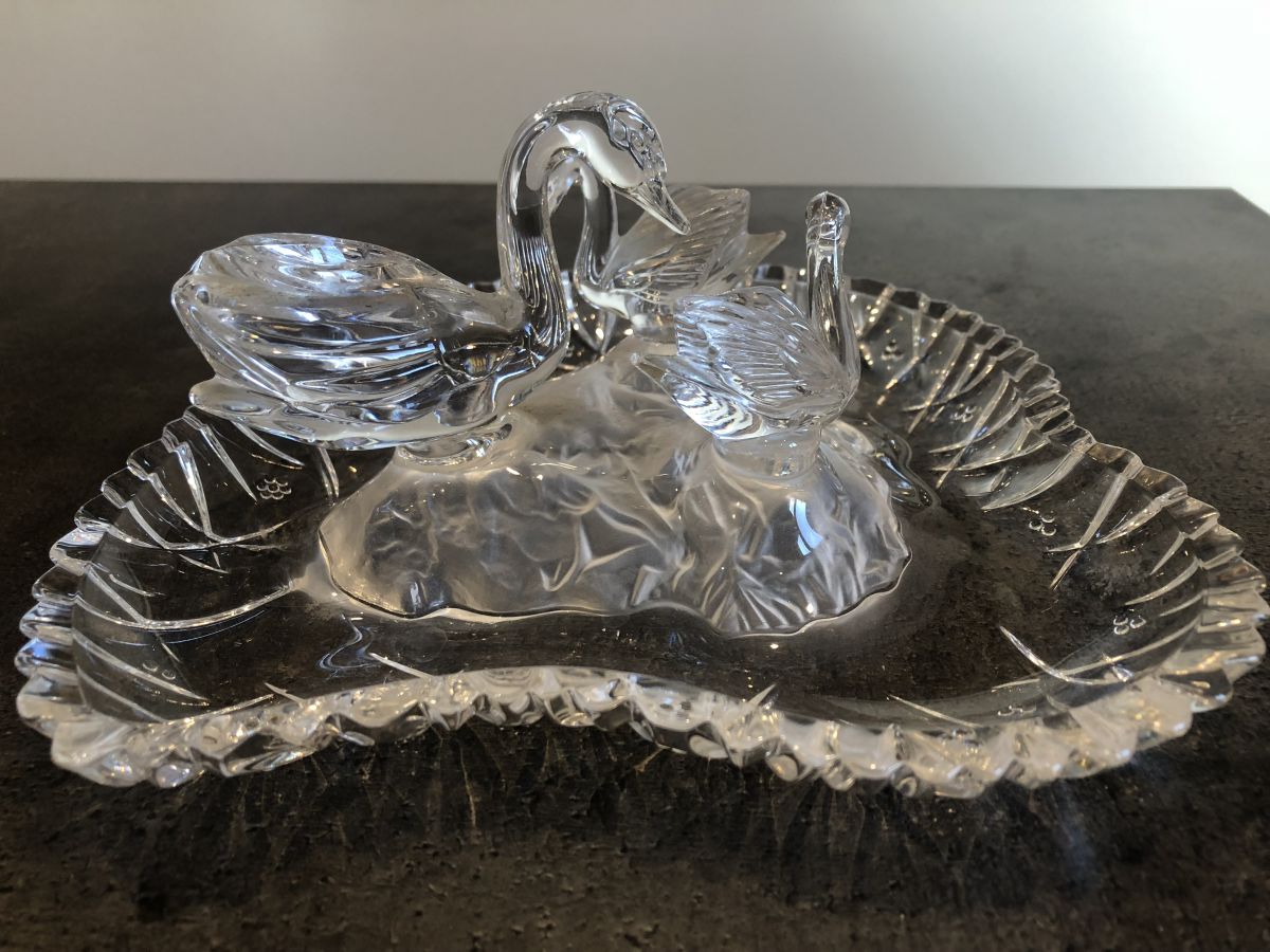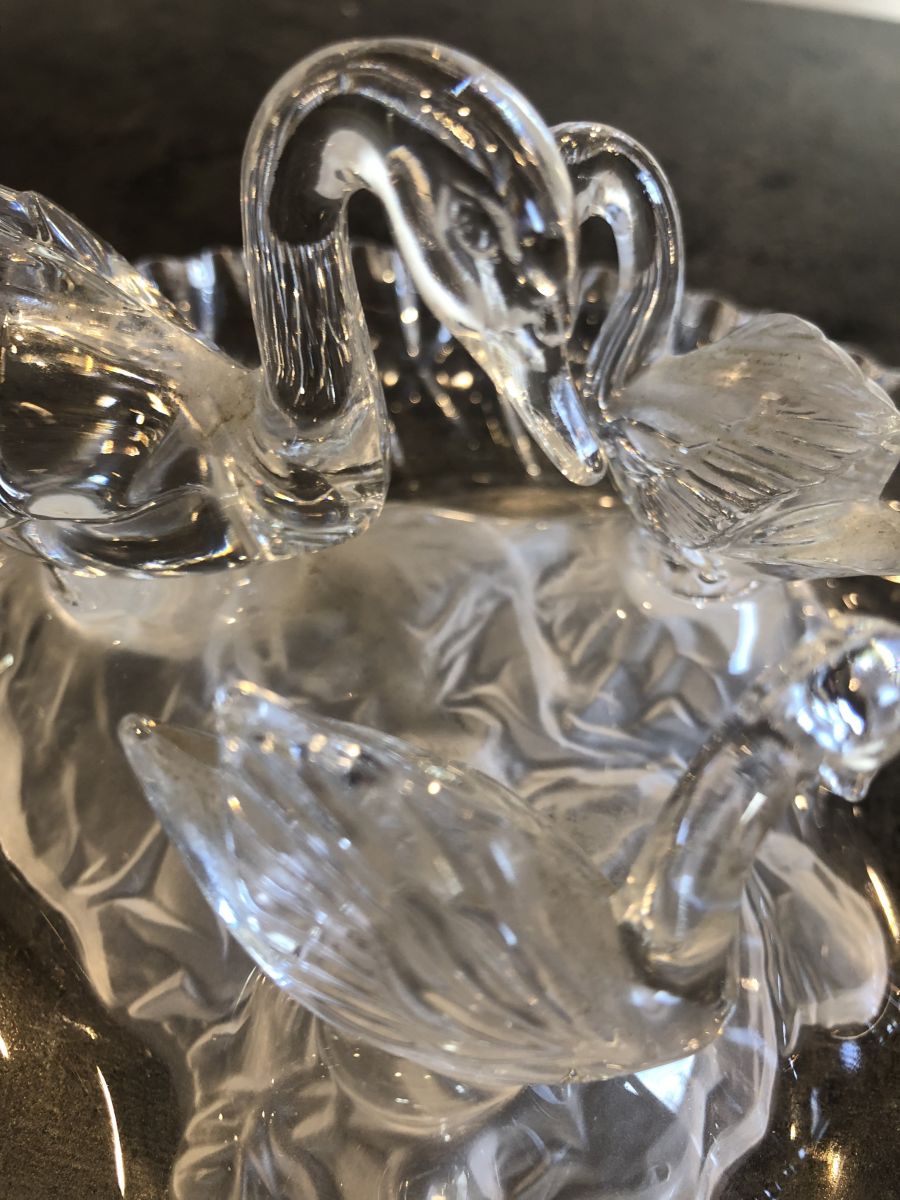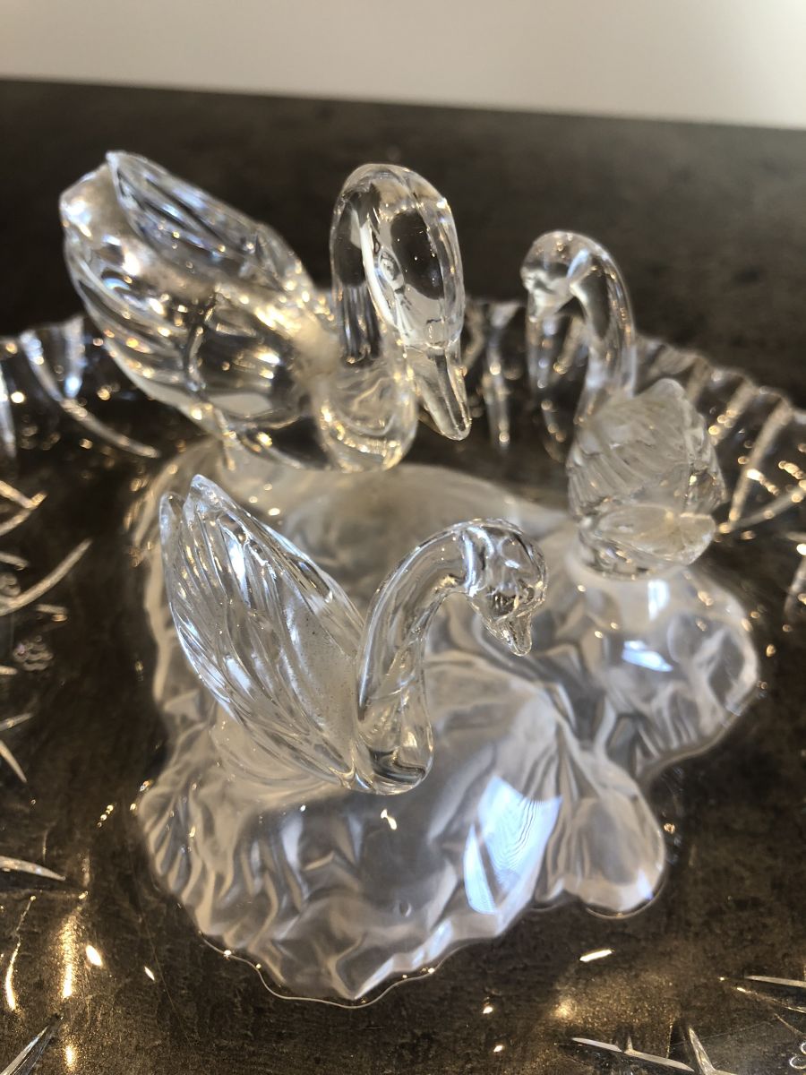 Vide poche ou simple décoration représentant 3 cygnes en verre dans une coupelle
