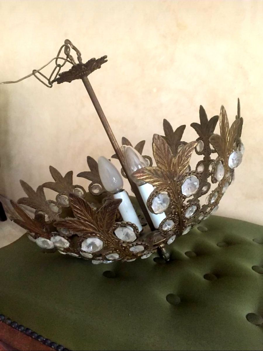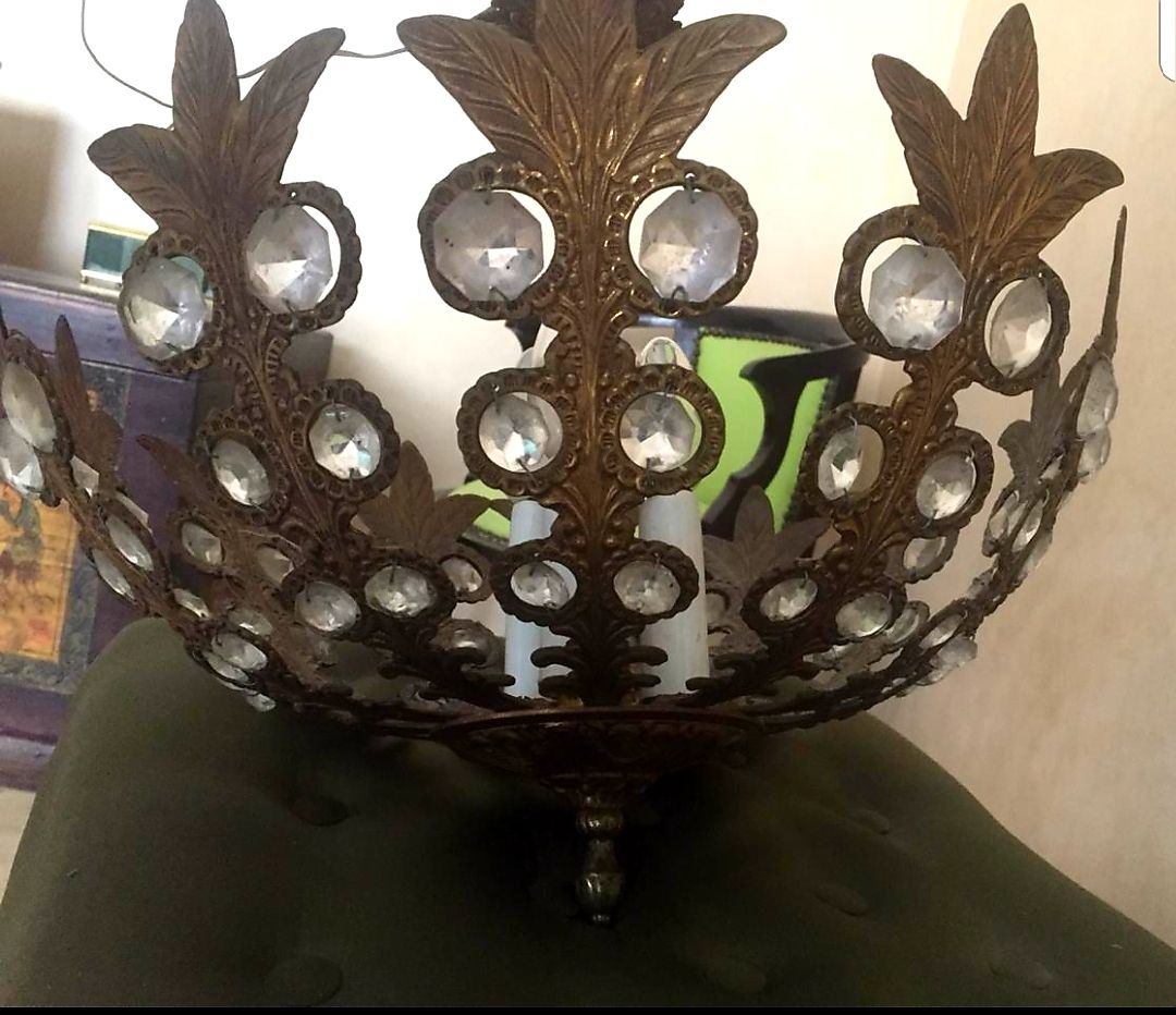 Petit lustre en bronze avec cristaux