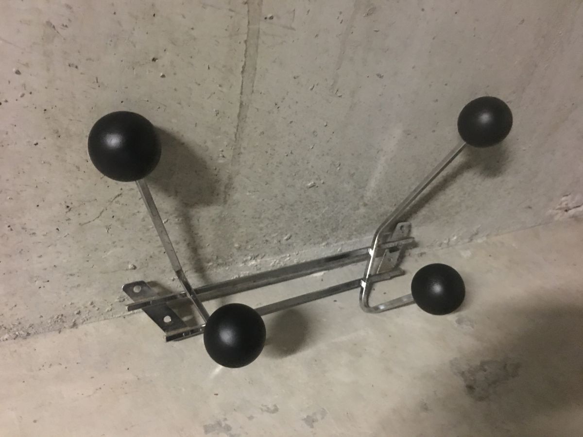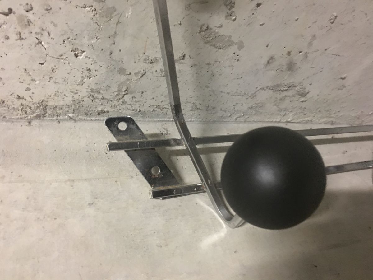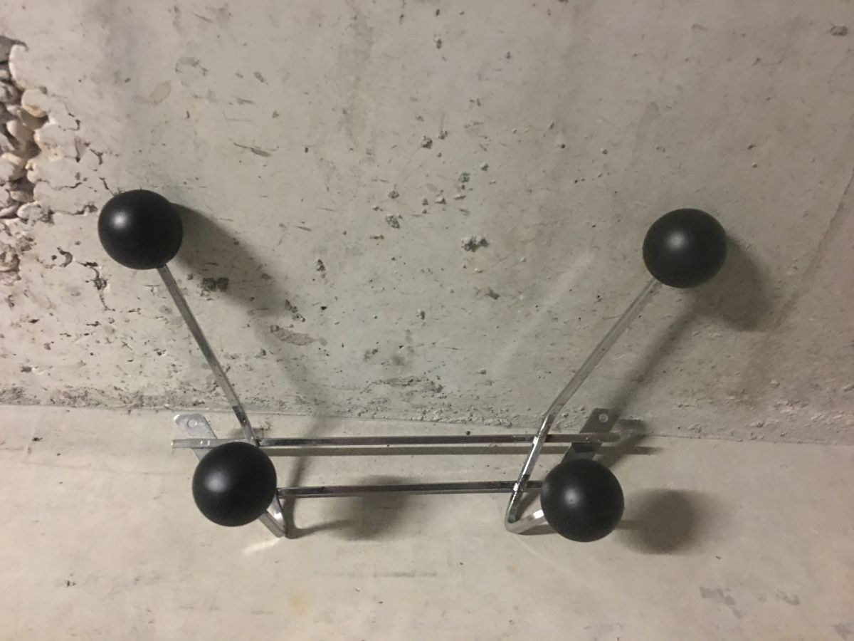 Jolie patère des années 50 en métal chromé et 4 boules en bois noir mat, dimensions (cm) : L.30xH.20xP.10, bon état.