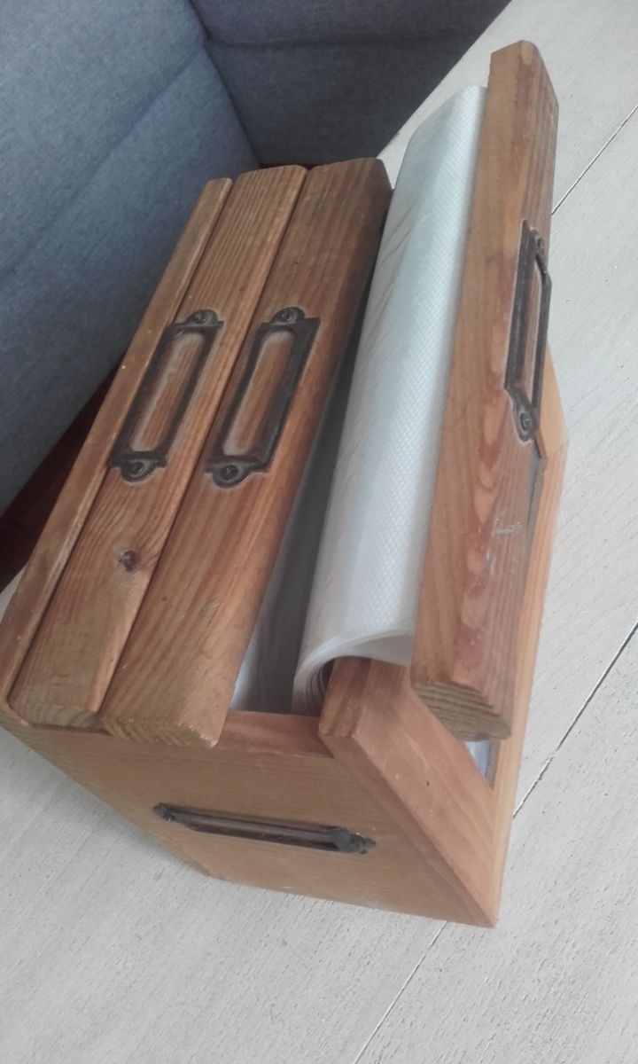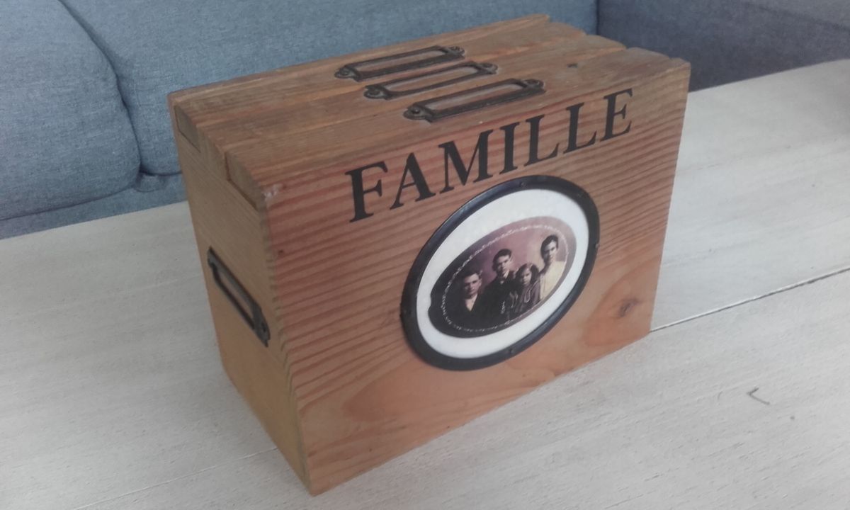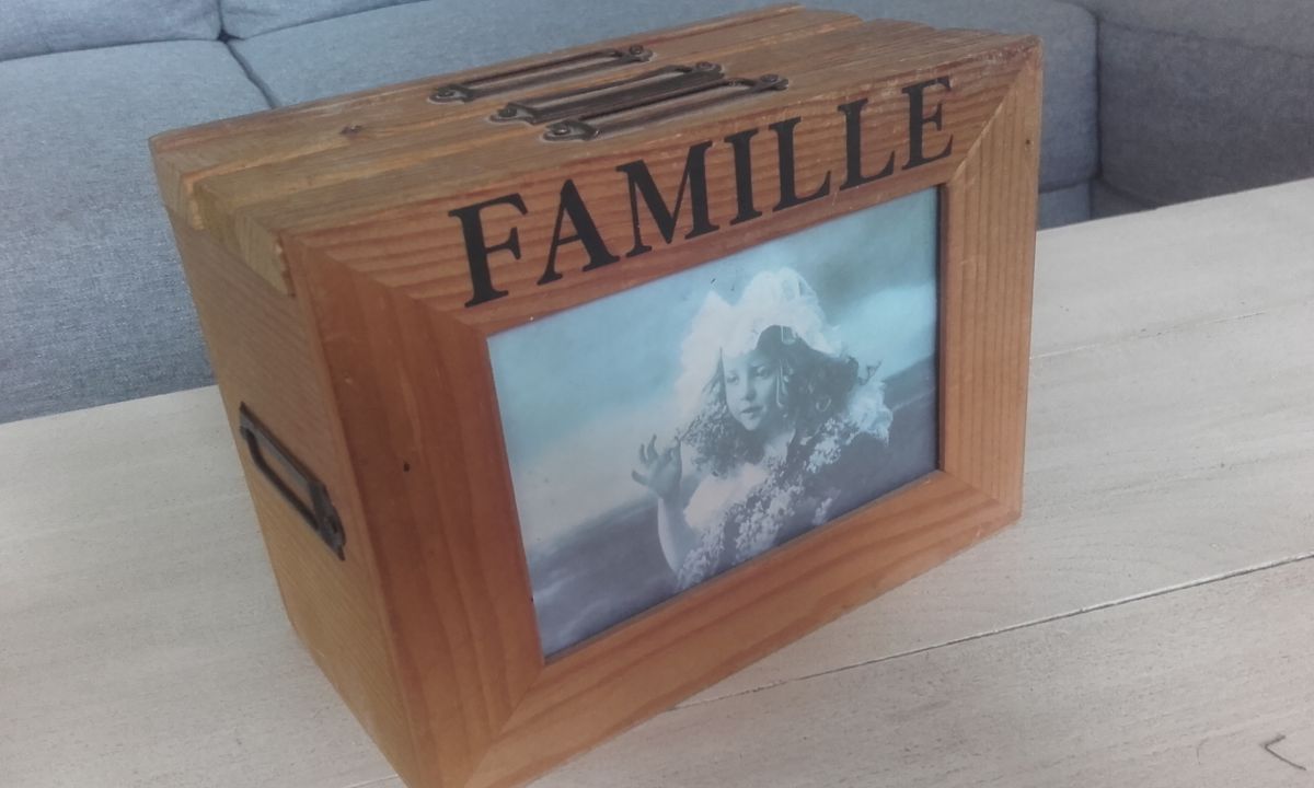 Authentique porte photos vintage en bois à trois compartiments et rangement de 62 photos .