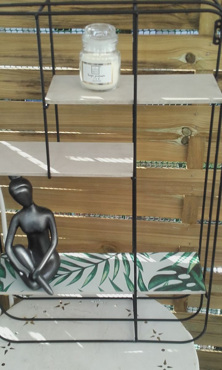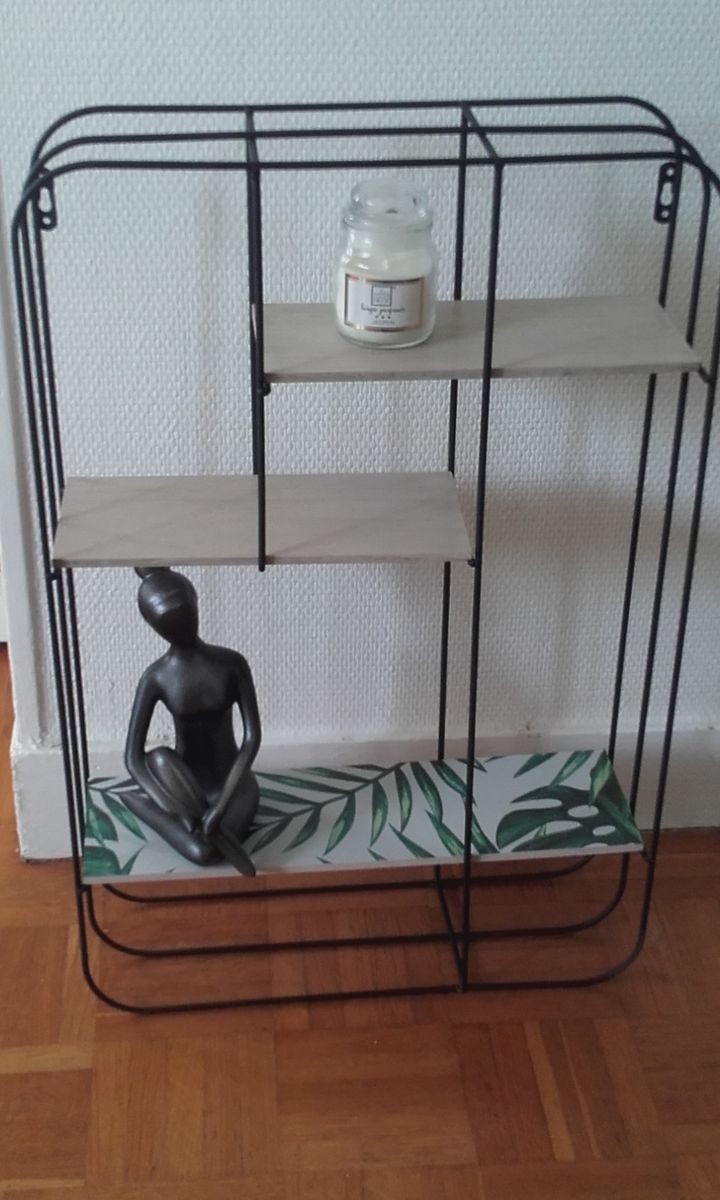 Étagère murale ou à poser en bois et métal avec 3plateaux,entièrement rénovée.