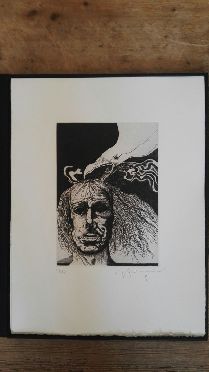 L'artiste en a réalisé 18 différentes pour une édition des oeuvre d'Edgar Poe aux Éditions Michel de l'Ormeraie