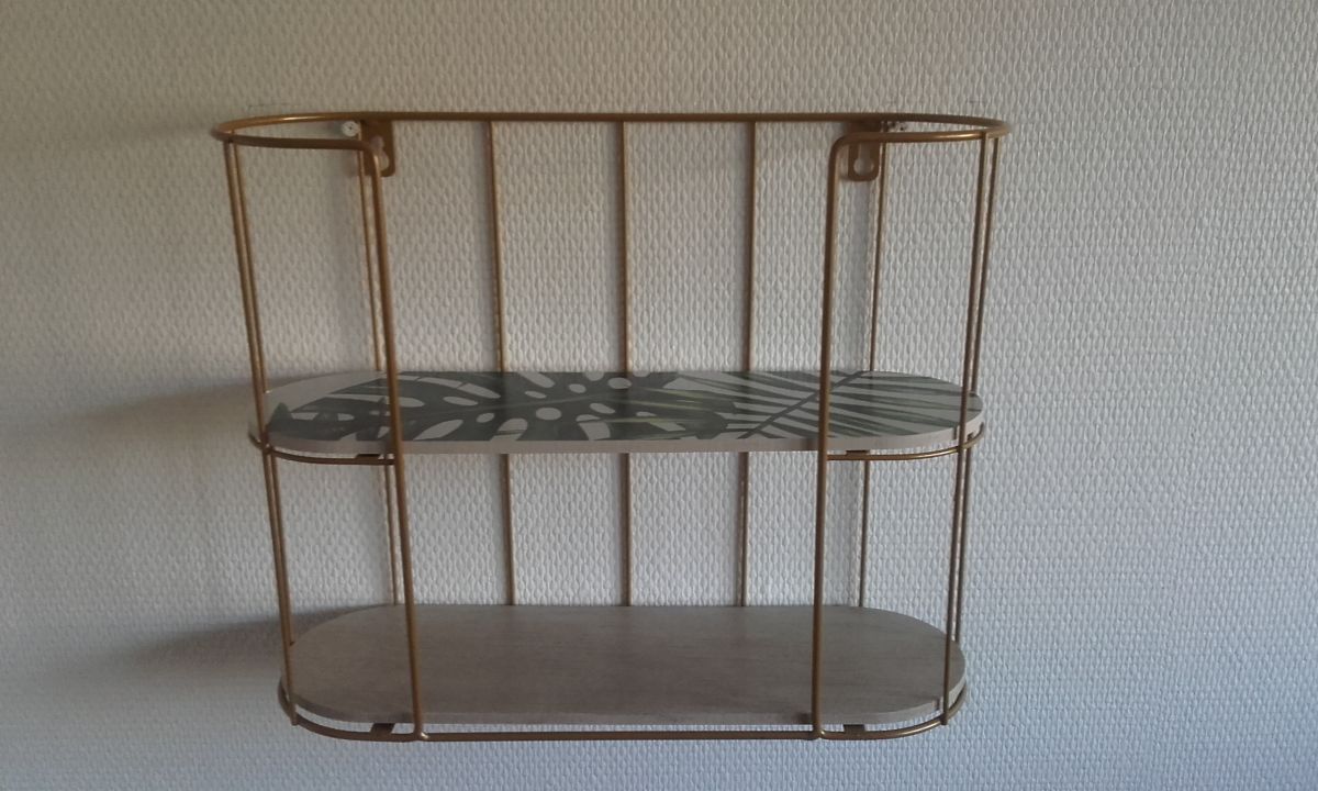 Étagère murale ou à poser en bois et métal entièrement rénovée.