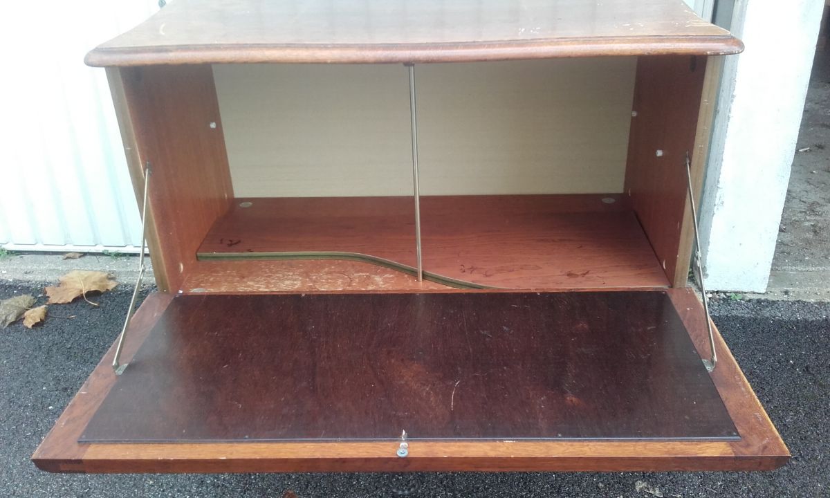 Meuble en bois vintage monté sur 4 roulettes,pour rangement ou mini bar.Idéal pour une déco vintage de toutes les pièces de votre intérieur.