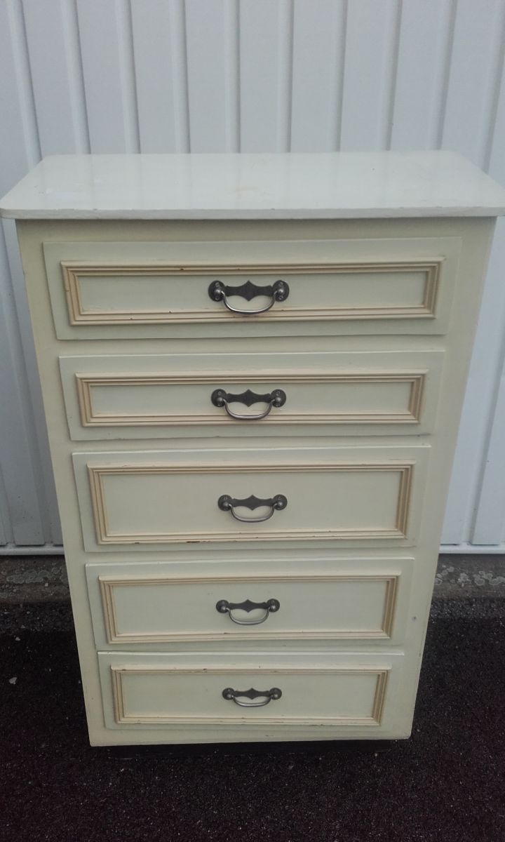 Chiffonnier en bois munis de cinq tiroirs dans son jus.