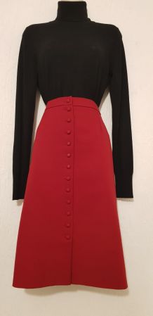 Jupe doublée fruit de la production d'une grande couturière parisienne, depuis j'ai fait des ajustements à ma taille et entre autre les élastiques à la taille. Le tissu en laine est de très haute qualité.