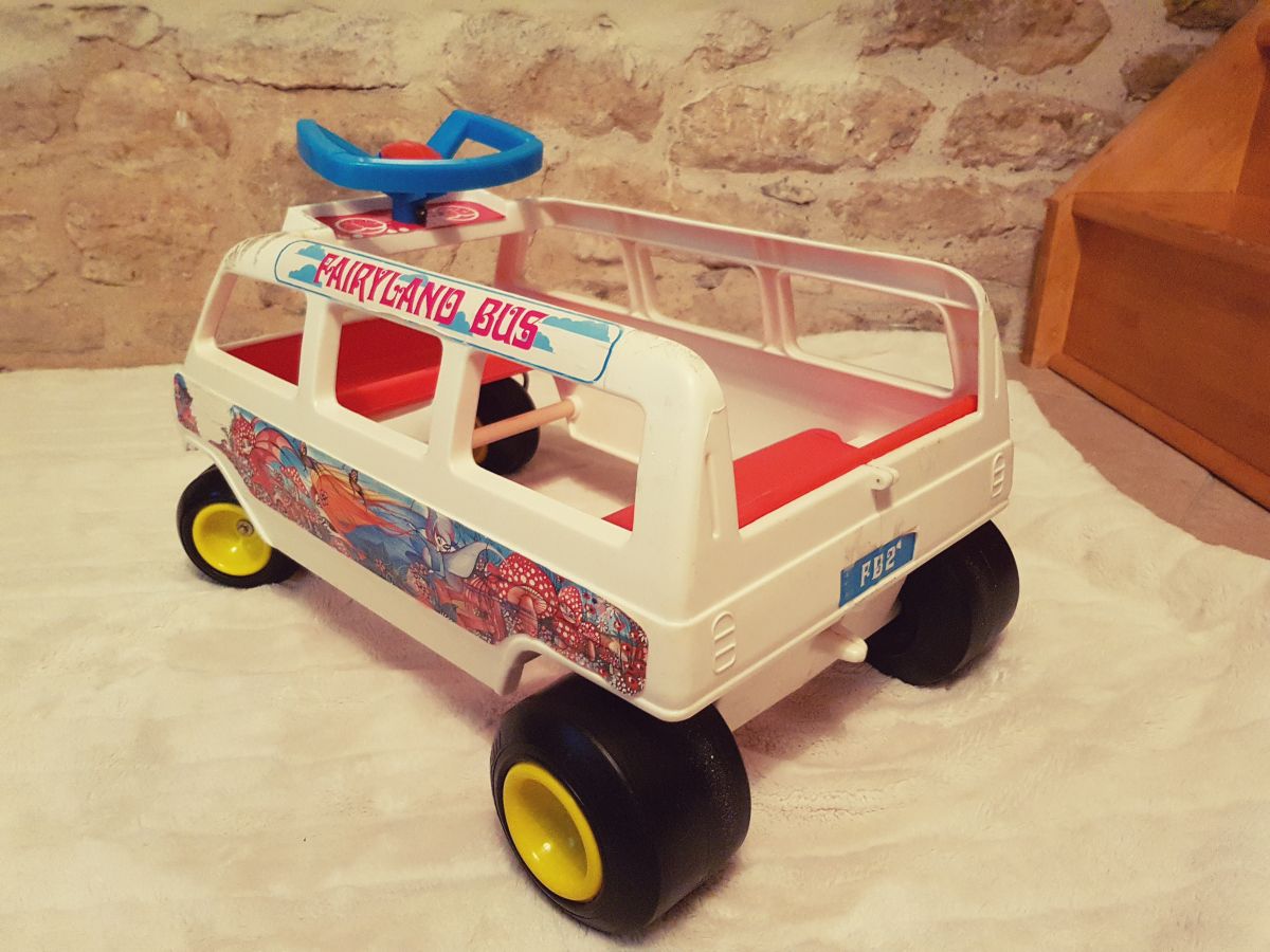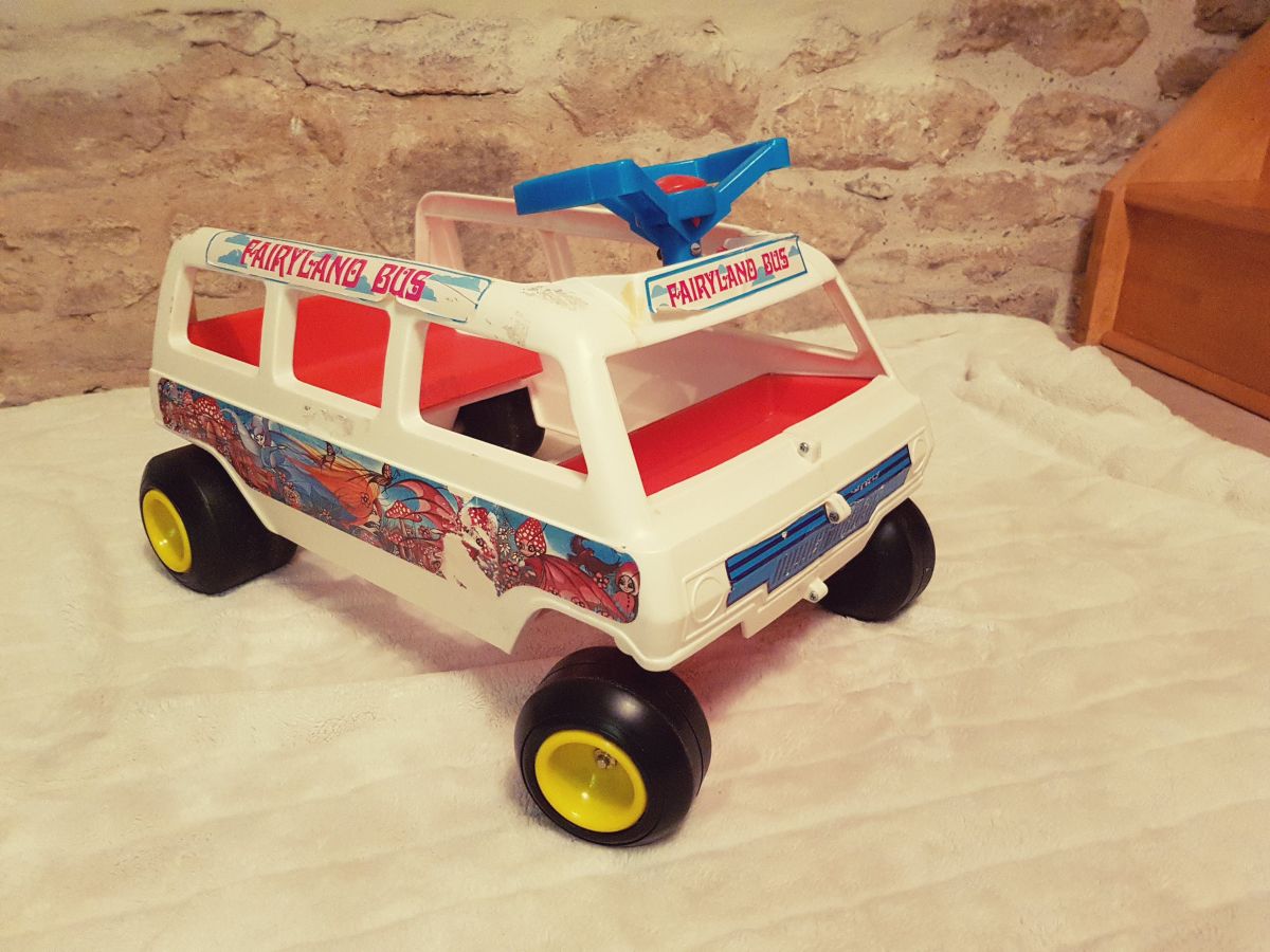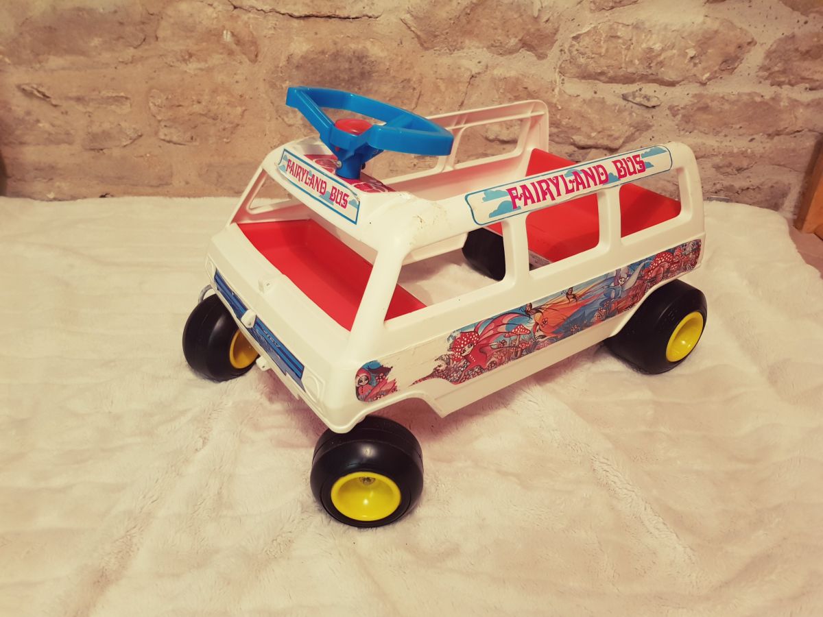 Trotteur porteur enfant marque KUSAN. "fairyland bus" Bon état avec quelques traces d'usage sur les autocollants.