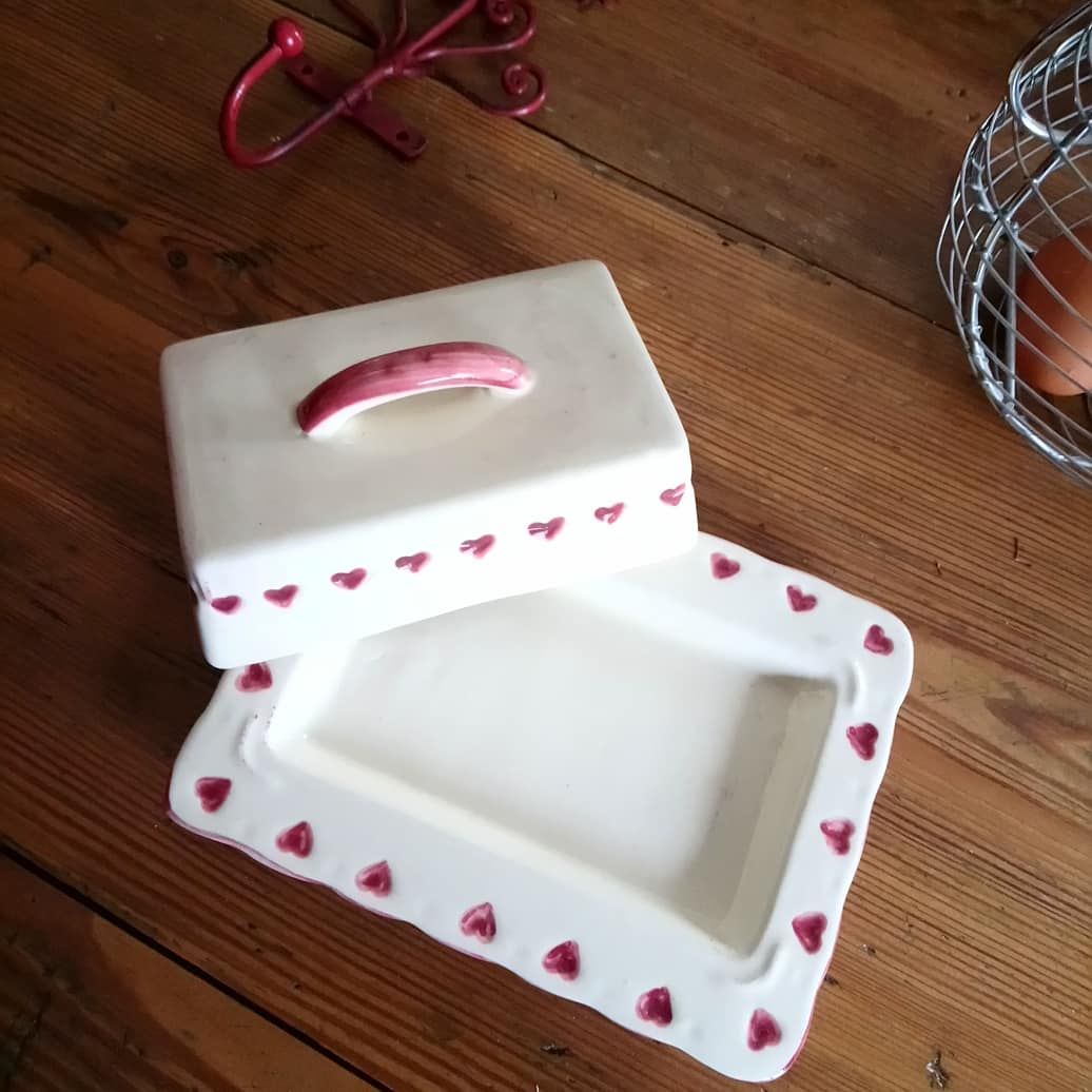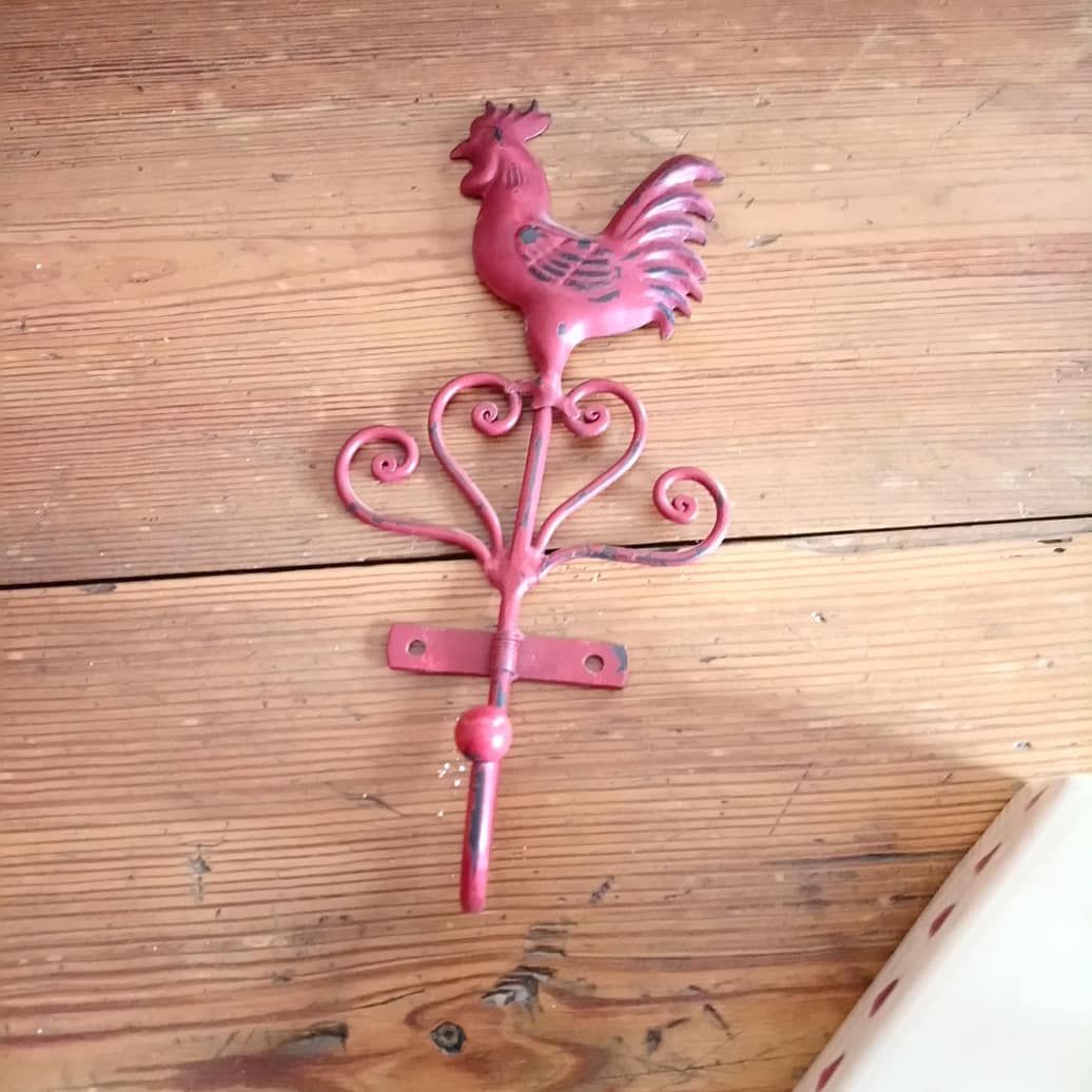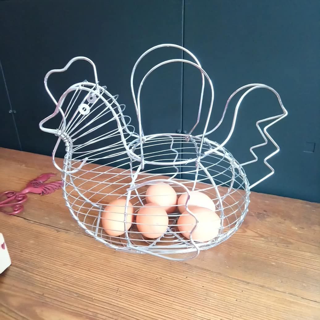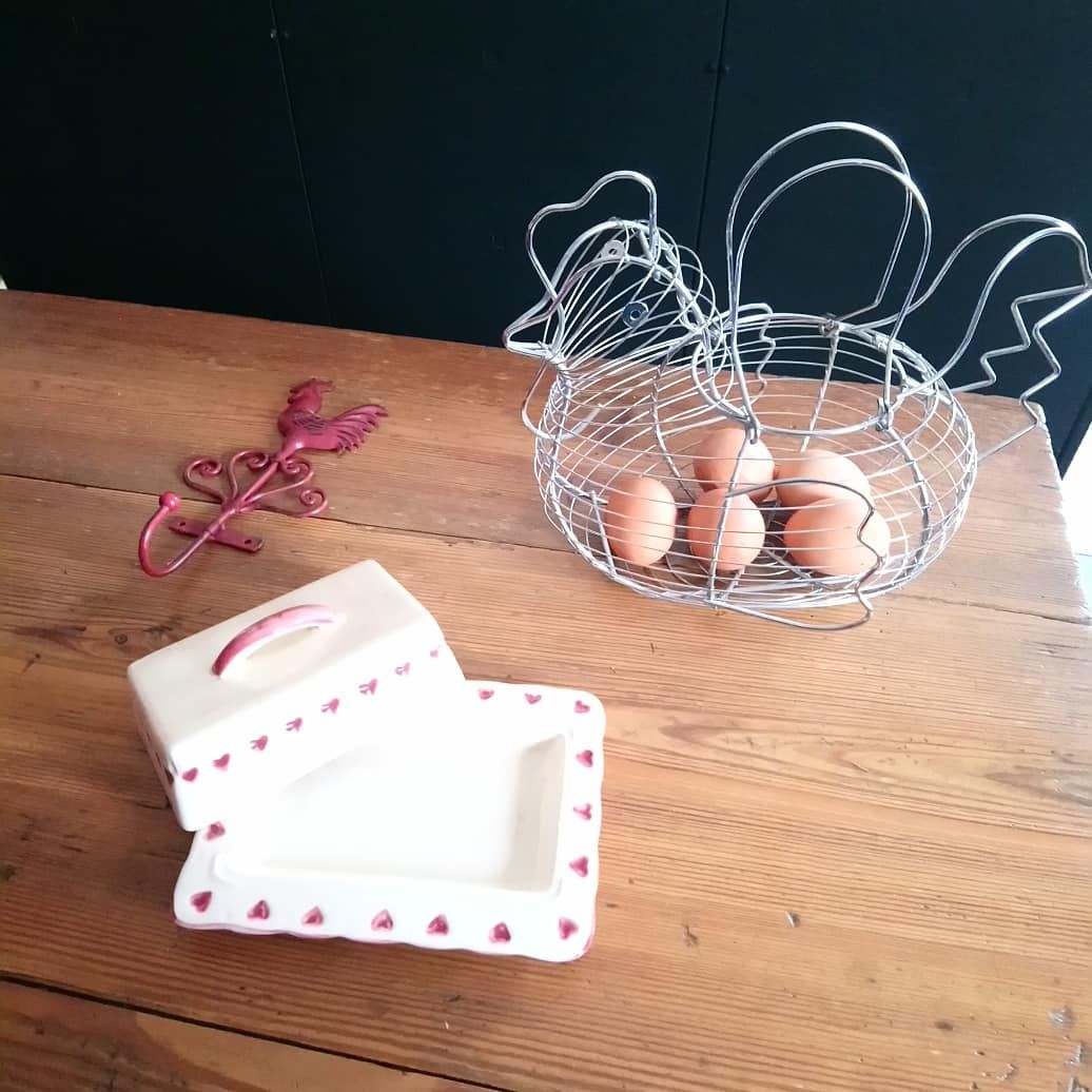 Ensemble comprenant le panier à œufs poulette, beurrier en céramique , et accroche serviette en métal.