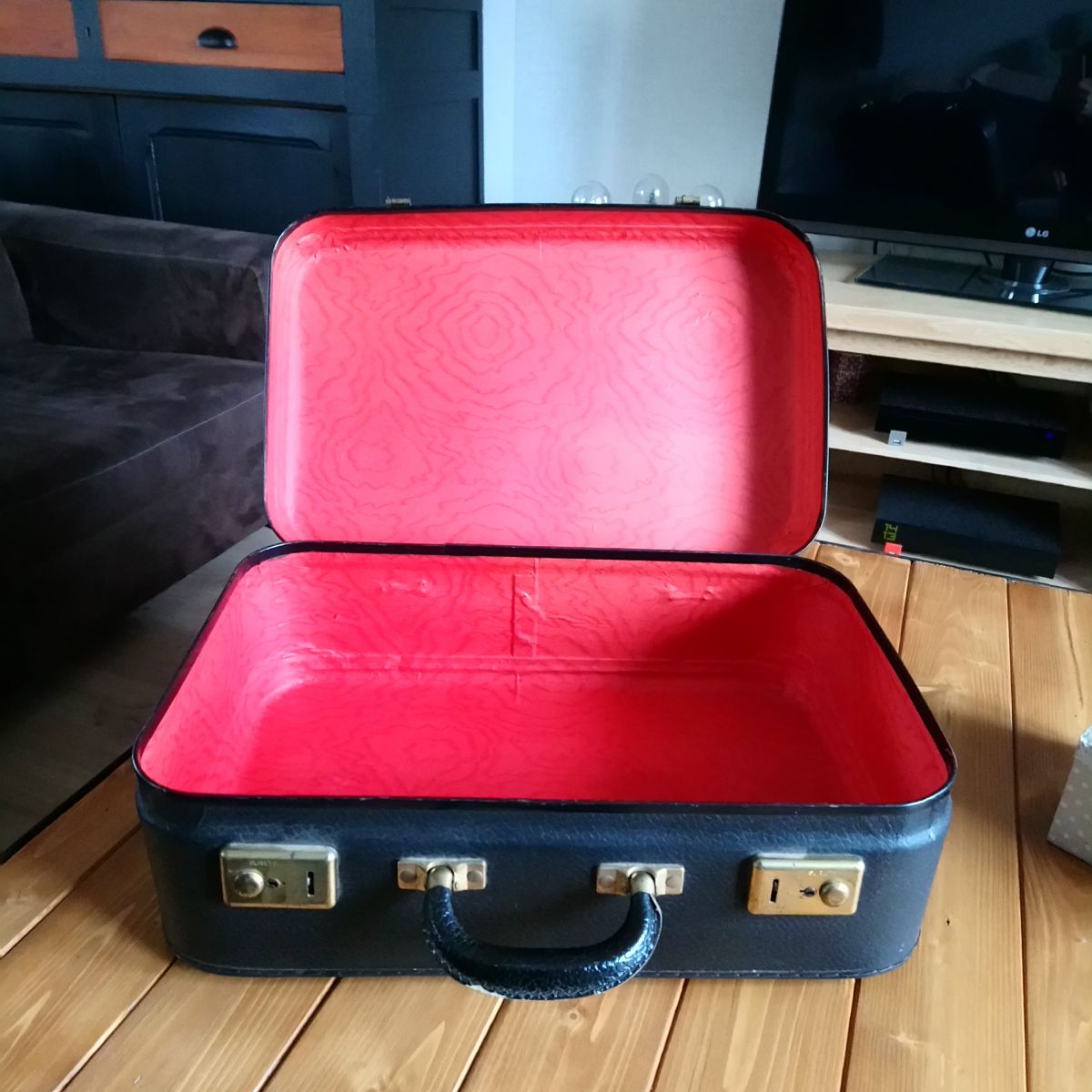 Valisette vintage, intérieur rouge, idéal pour y dissimuler petits objets. Elle trouvera sa place dans toutes les pièces de votre intérieur avec sa petite taille et son look vintage.