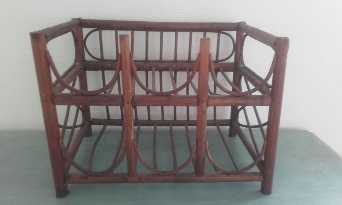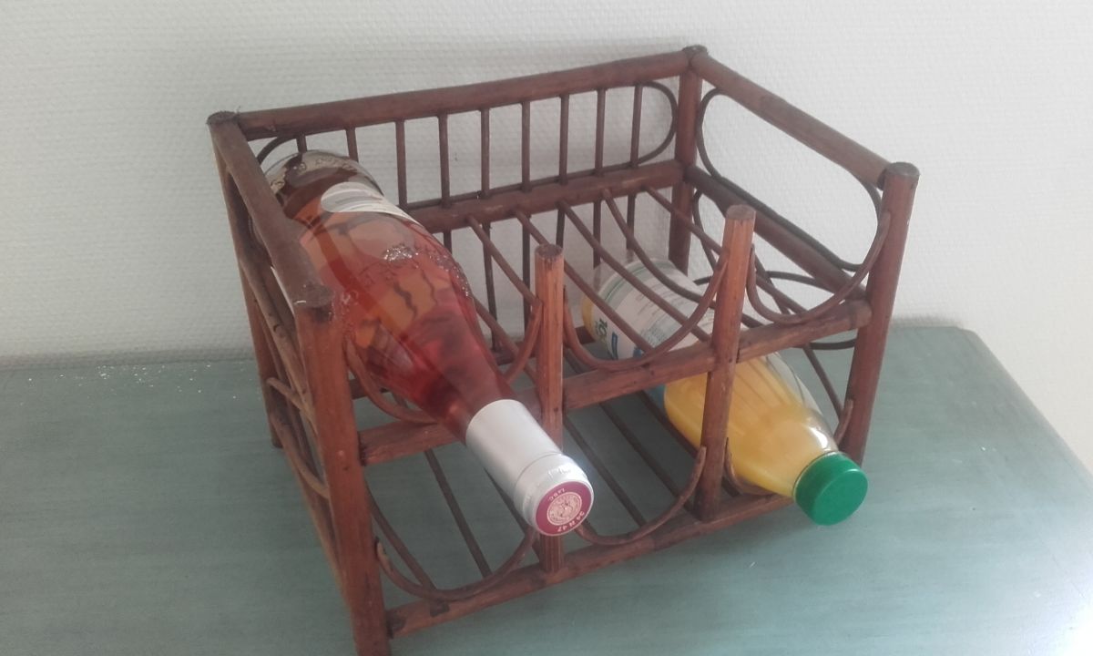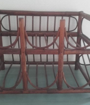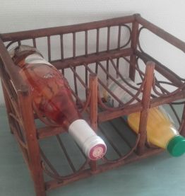 Porte bouteilles vintage en rotin