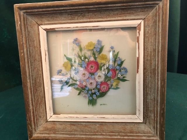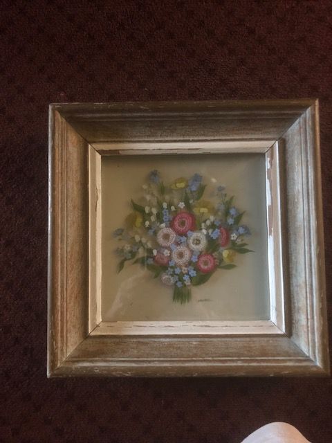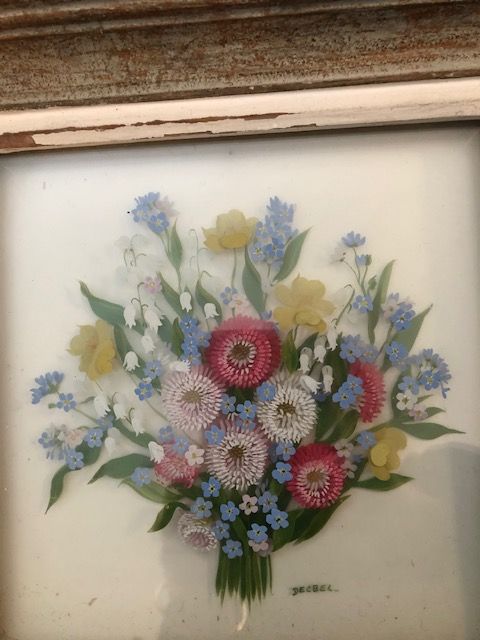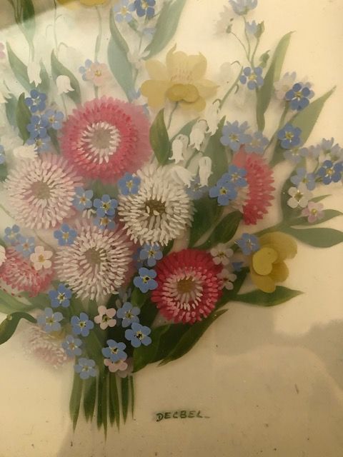 Peinture florale sur verre, signée Decbel, Vintage, années 50'