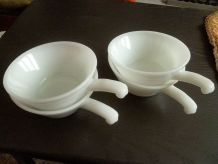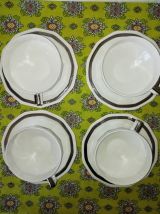 Lot de 4 tasses en porcelaine de limoges dans leur jus. Une belle finesse de porcelaine et un aspect rétro irrésistible pour ces tasses style art déco.