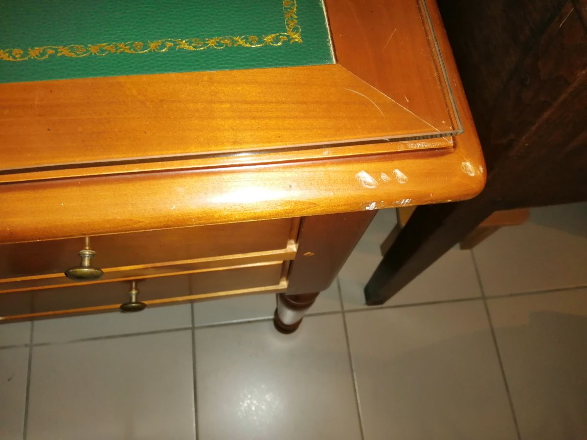 Vends très beau bureau vintage merisier et dessus cuir. Quelques défauts visibles sur les photos car utilisés dans cabinet médical. Une rallonge de chaque côté dont l'une ne se bloque plus. Système de blocage à refixer. Prix négociable.