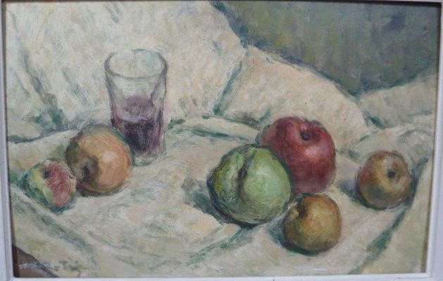 Nature morte aux fruits, huile sur bois, Rotge Prosper (1895-1969), signature au bas de la toile à gauche