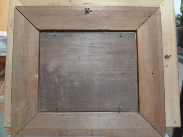 Peinture en très bon état, marie-louise décollée, cadre abîmé