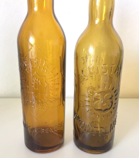 Inscriptions en relief. (recto verso pour la bouteille Bière Cristal Montplaisir Toulouse).