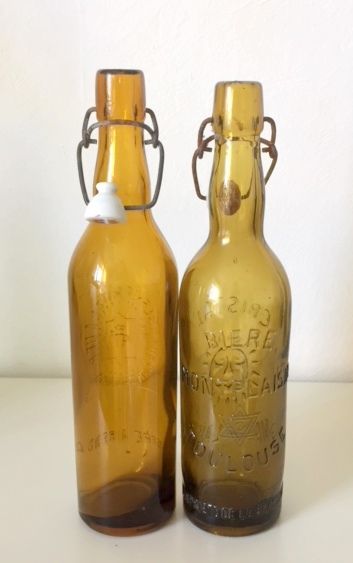 Deux modèles de marque : Carcassonne Brasserie Fritz Lauer et Bière Cristal Montplaisir Toulouse.