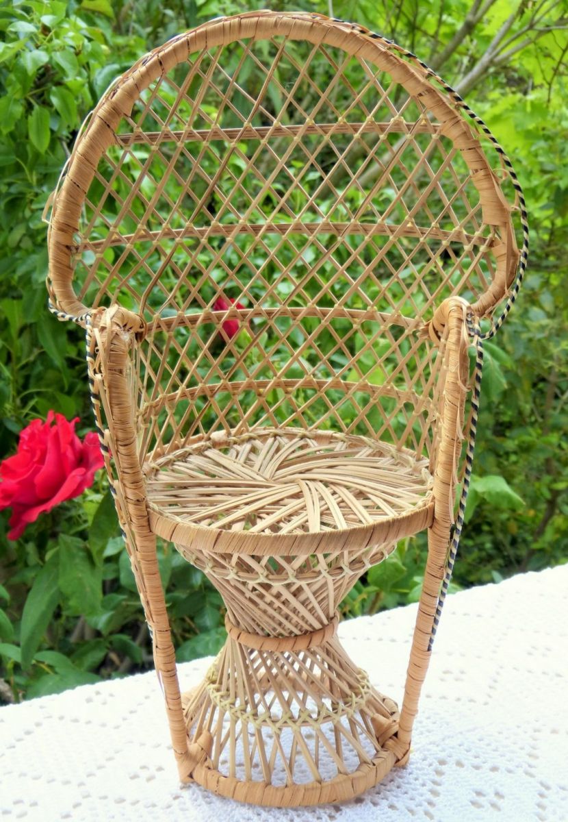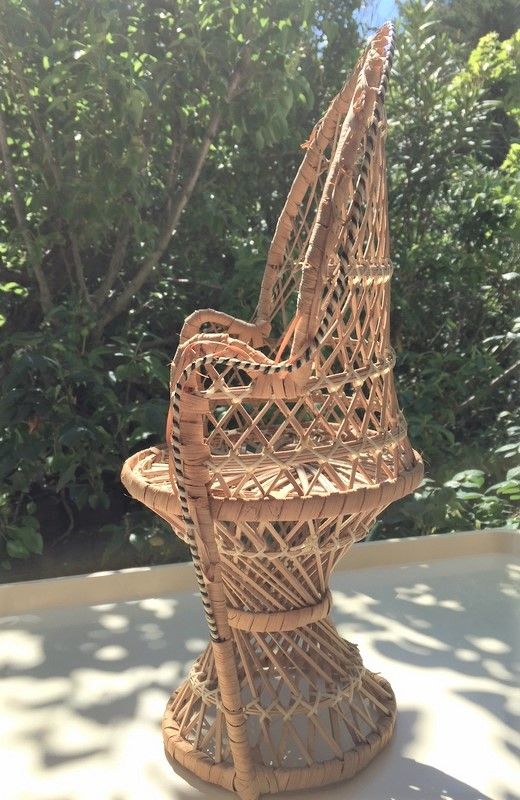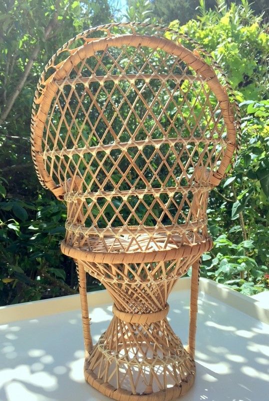 Fauteuil Emmanuelle pour poupée 70's en rotin - 42cm - Porte-plante déco. Fauteuil de petite taille, pour poupée, en rotin tressé.