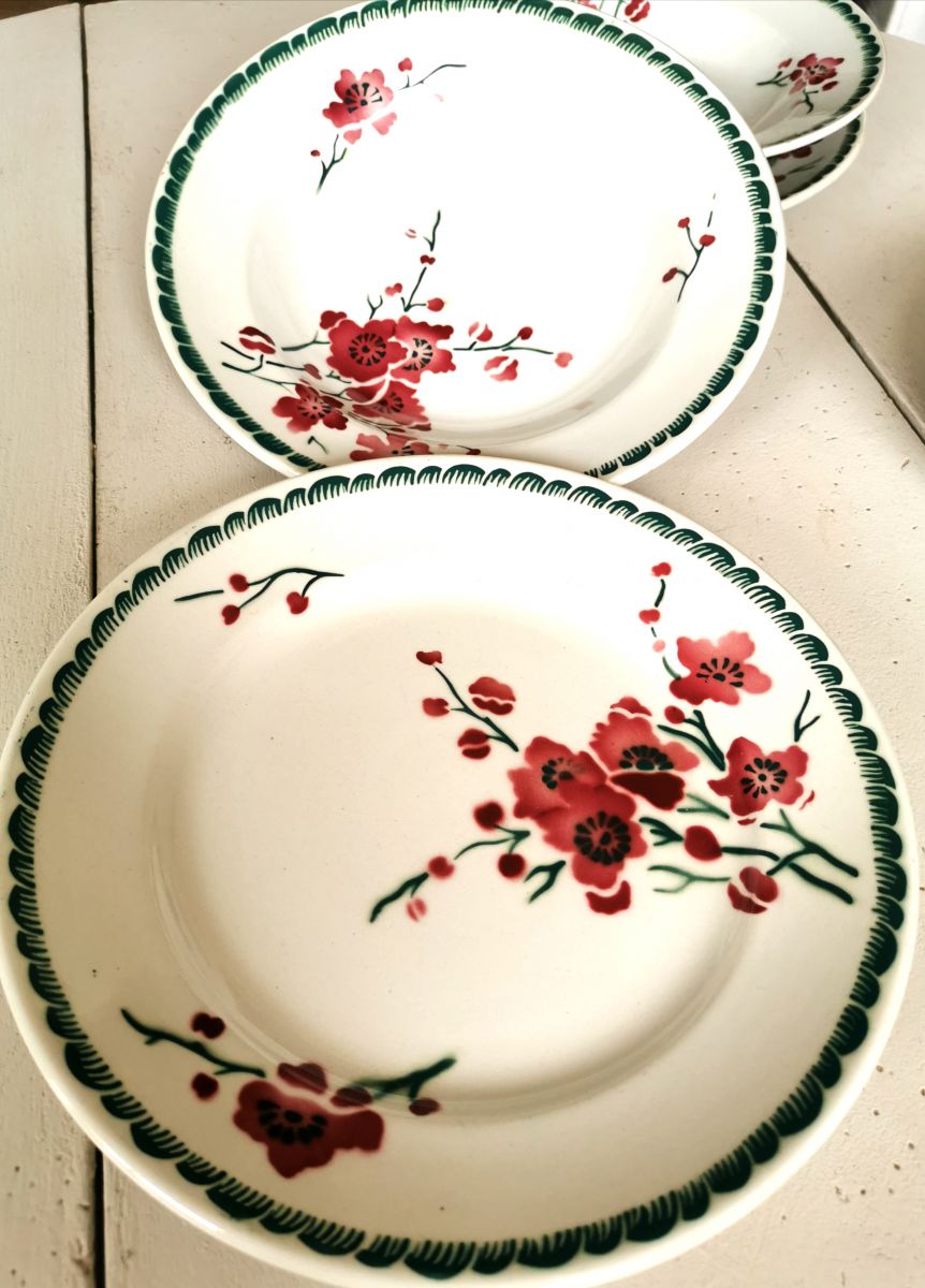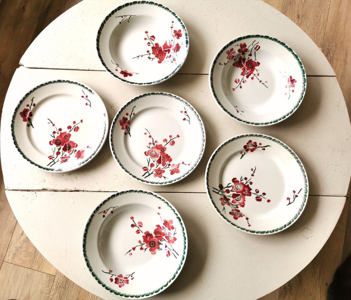 Marque FB lot d'assiettes anciennes style Digoin Sarreguemines.