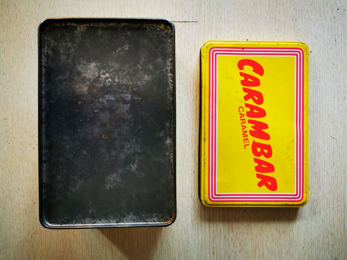 Boîte en métal carambar vintage.