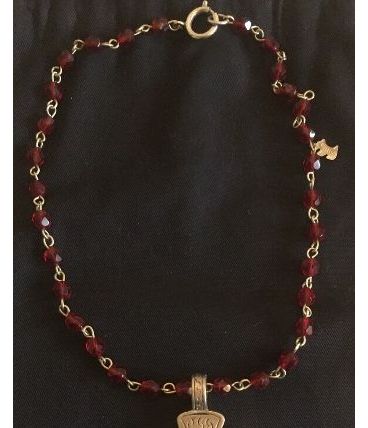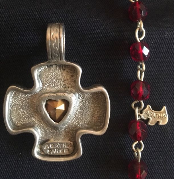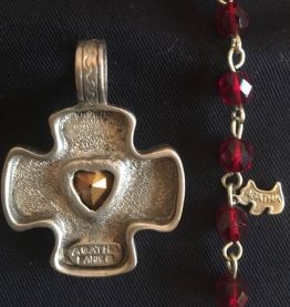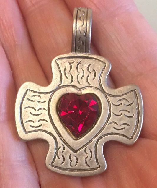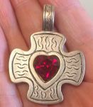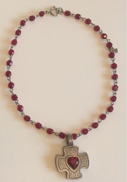 en métal coloris argent vieilli avec une pierre rouge en forme de coeur