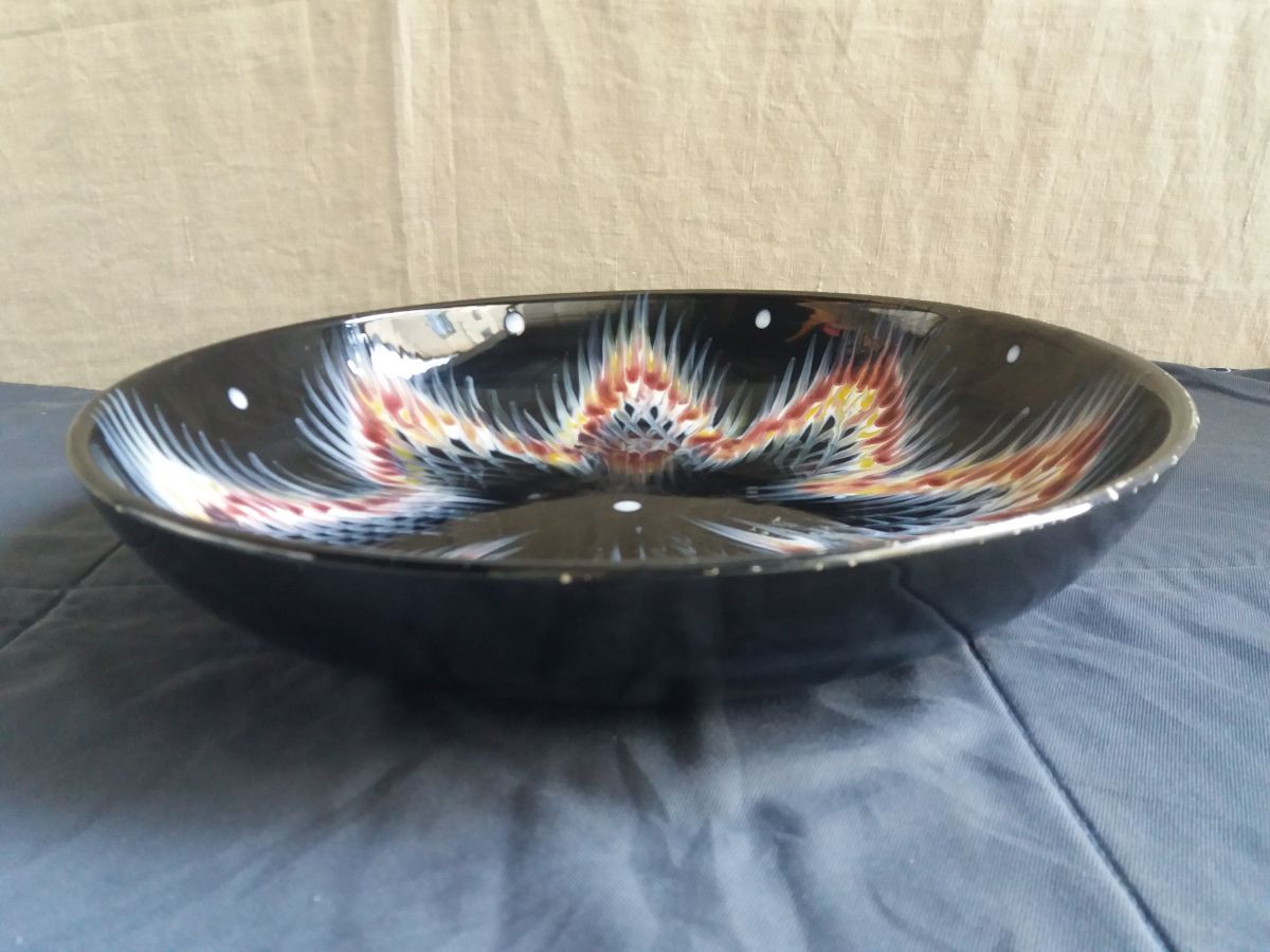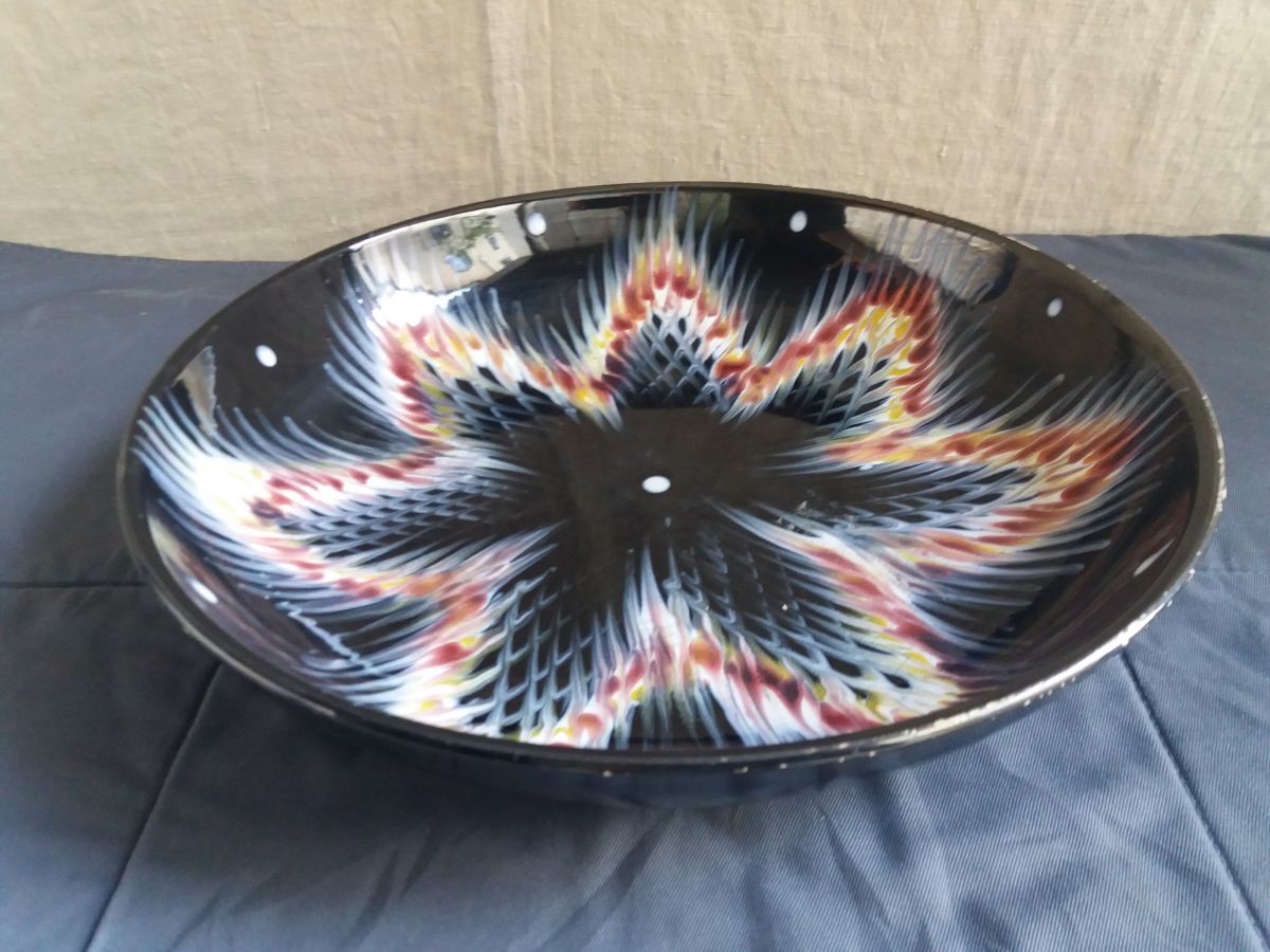 En faïence avec un joli décor moderniste d'étoile, sur fond noir