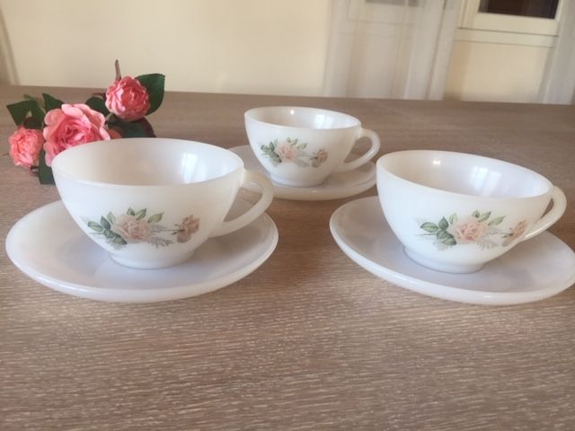 Lot de 3 tasses et sous-tasses Opaline Arcopal Vintage