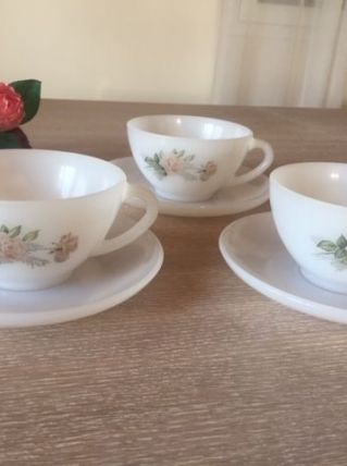 Lot de 3 tasses Opaline Arcopal Vintage shabby