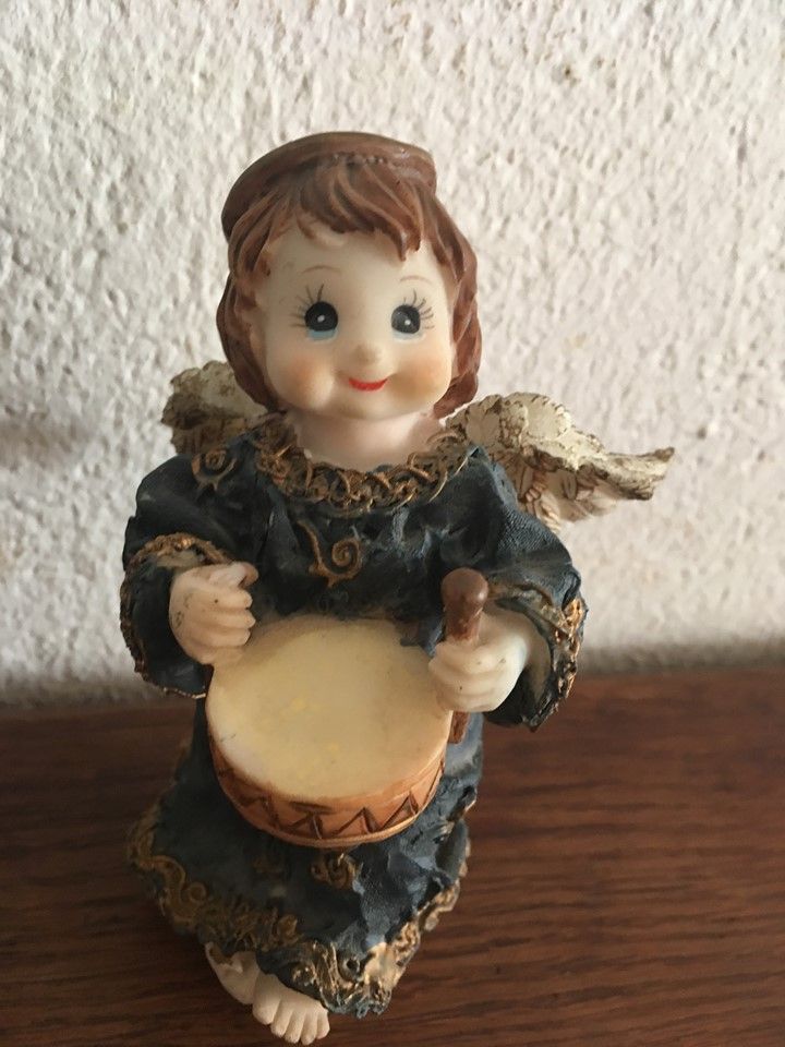 Très bon état général sauf pour l ange au tambour....qui a perdu la partie supérieure d une des deux baguettes!
