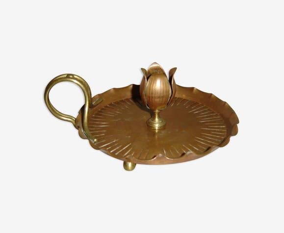 bougeoir à main en cuivre