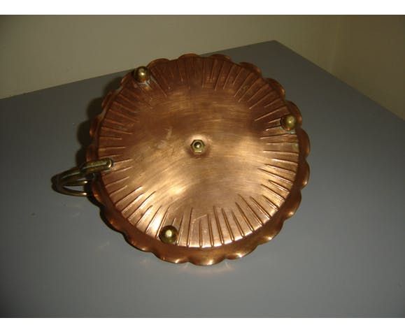 Bougeoir à main cuivre et laiton. Grand diamètre 16 cm.belle rose pour tenir bougie.