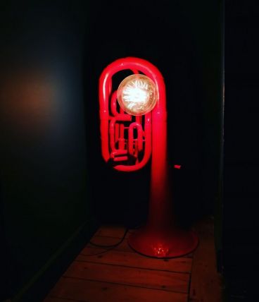 Lampe originale vintage montée sur Tuba authentique avec ampoule à filaments .