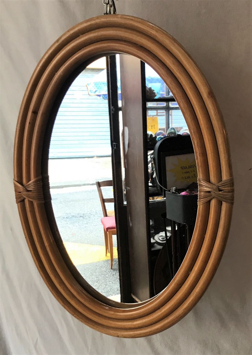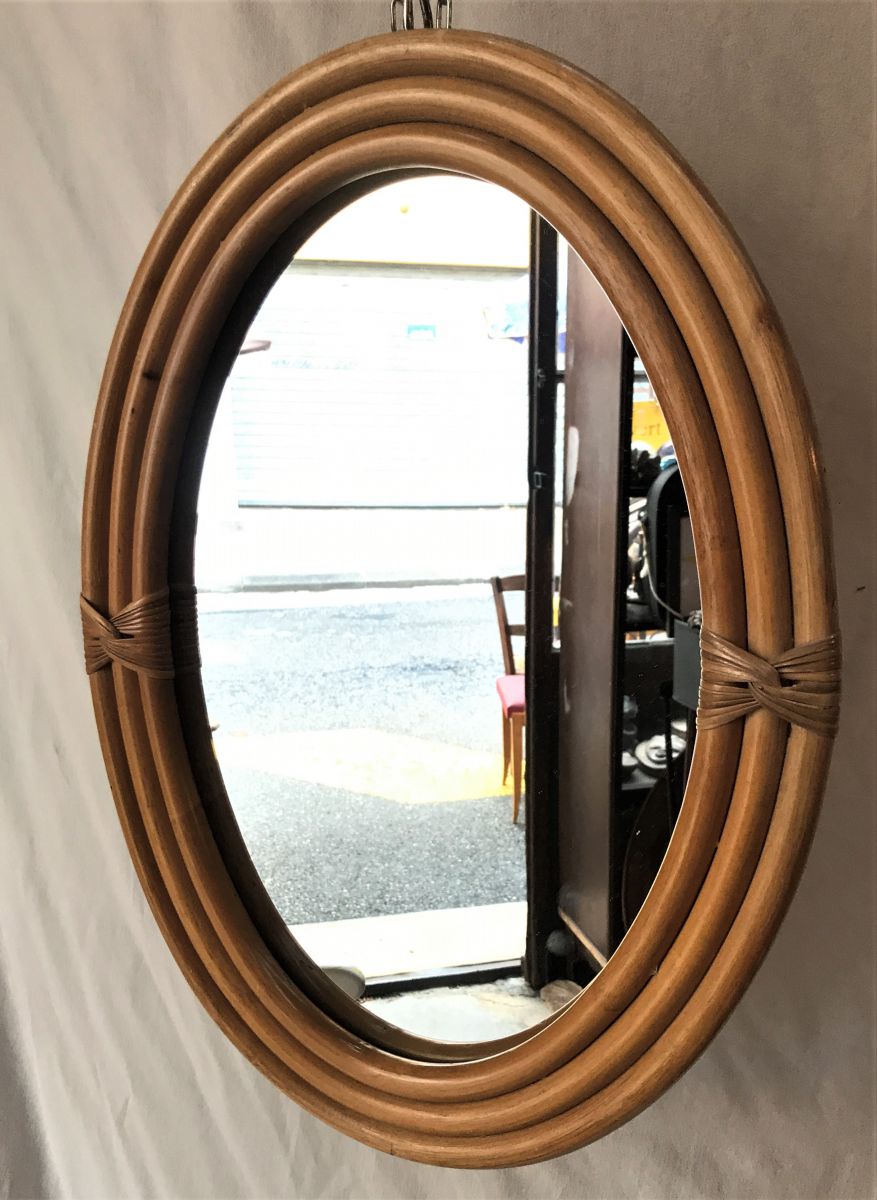 Miroir ovale bambou des années 60.