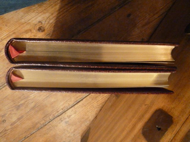 Deux volumes in-4°(30 x 24,5cm) ; reliure d'éditeur plein cuir grenat ; Dos orné de motifs dorés et portant le titre ; Tranches dorées ; 243 & 218p. Ouvrages illustrés de 174 gravures sur bois par Gustave Doré dont 54 à pleine page ; Edition numérotée, exemplaire n° 715 - État neuf.