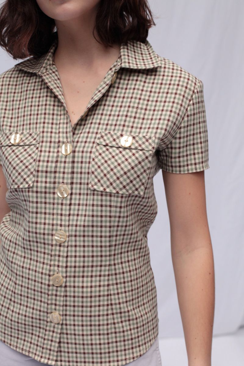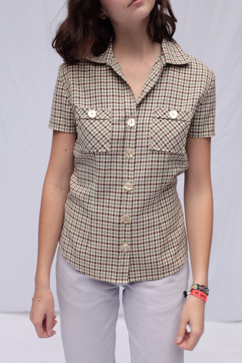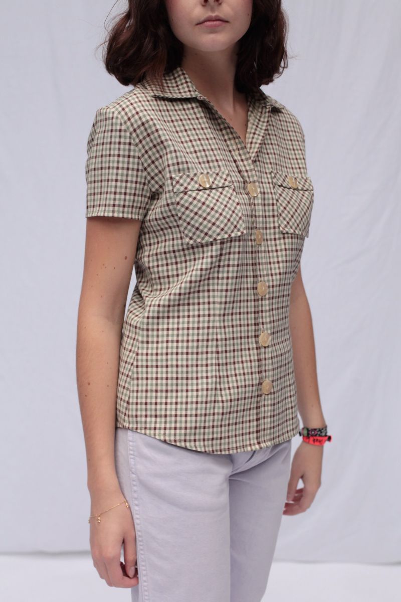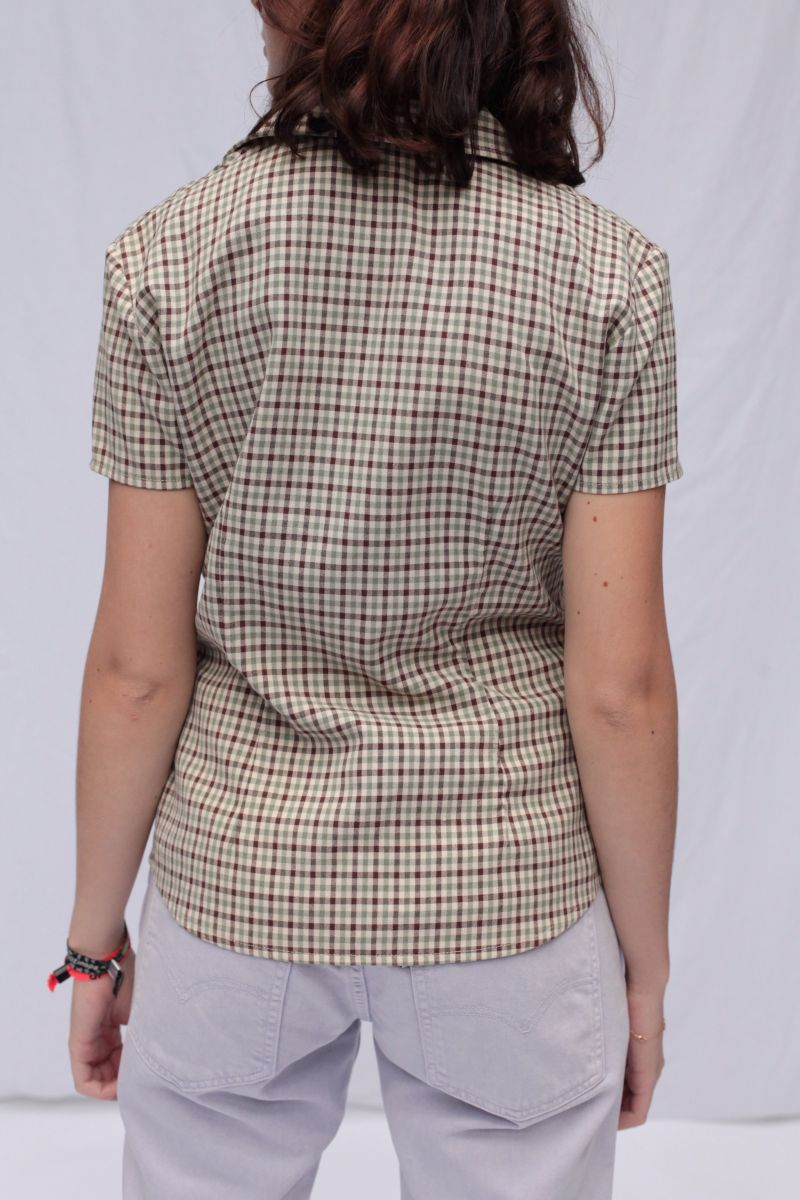 Chemisette cintrée vintage lin à fins carreaux taille 36