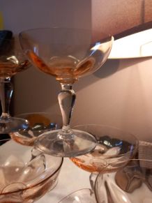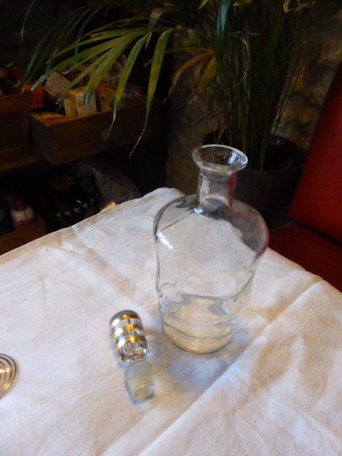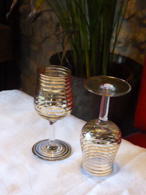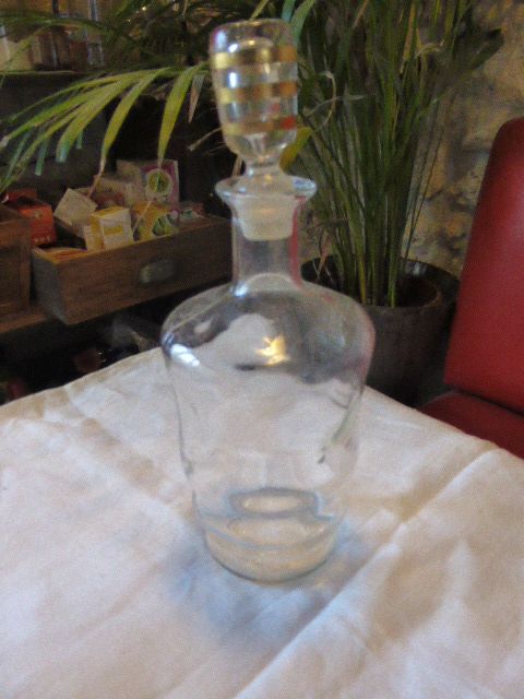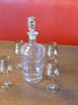 Service a liqueur, carafe et 5 verres, liserés or vintage 50