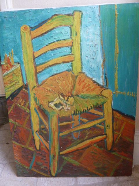 Huile sur toile, copie chaise de Vincent van Gogh 30 x40 cm