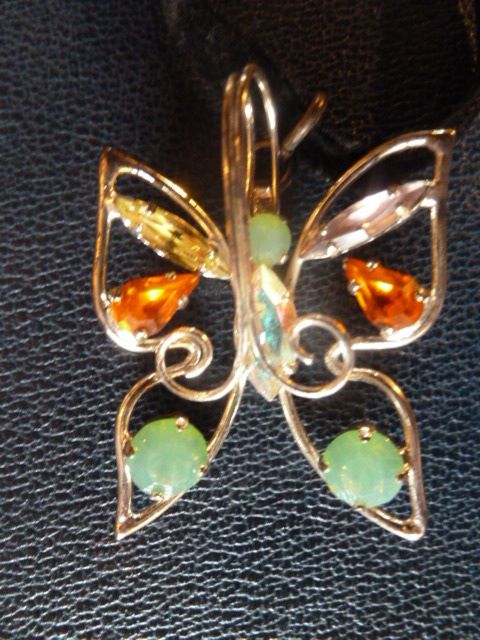 Pendentif "papillon" en métal et cristal, Daniel Swarovski
