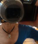 Pendentif "papillon" en métal serti de cristal, Daniel Swarovski, sur un ruban de velours noir.