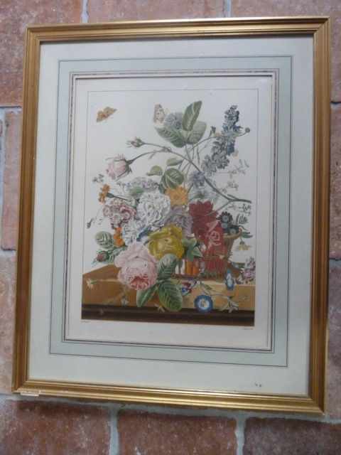 Lithographie encadrée avec passe-partout, bouquet de fleurs d'Antoine Chazal, imprimé chez Fernand Mourlot.