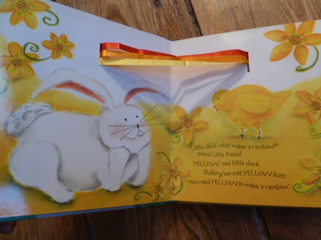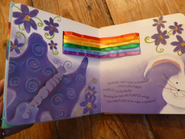 Toddlers will love listening to the charming story and seeing a different colored ribbon with the turn of each page. The last page is sure to delight with all the colors of the rainbow. What a fun way to learn colors !