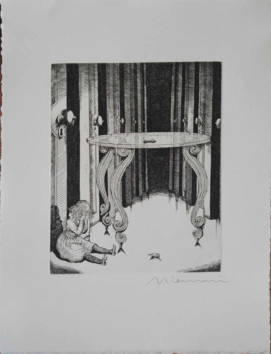 Superbe gravure originale signée au crayon par l'artiste. Pointe sèche pour Alice au pays des merveilles de Lewis Carroll.