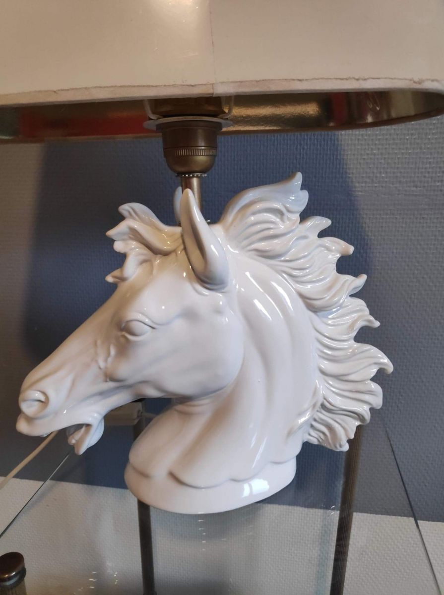 lampe tête de cheval en céramique blanche
