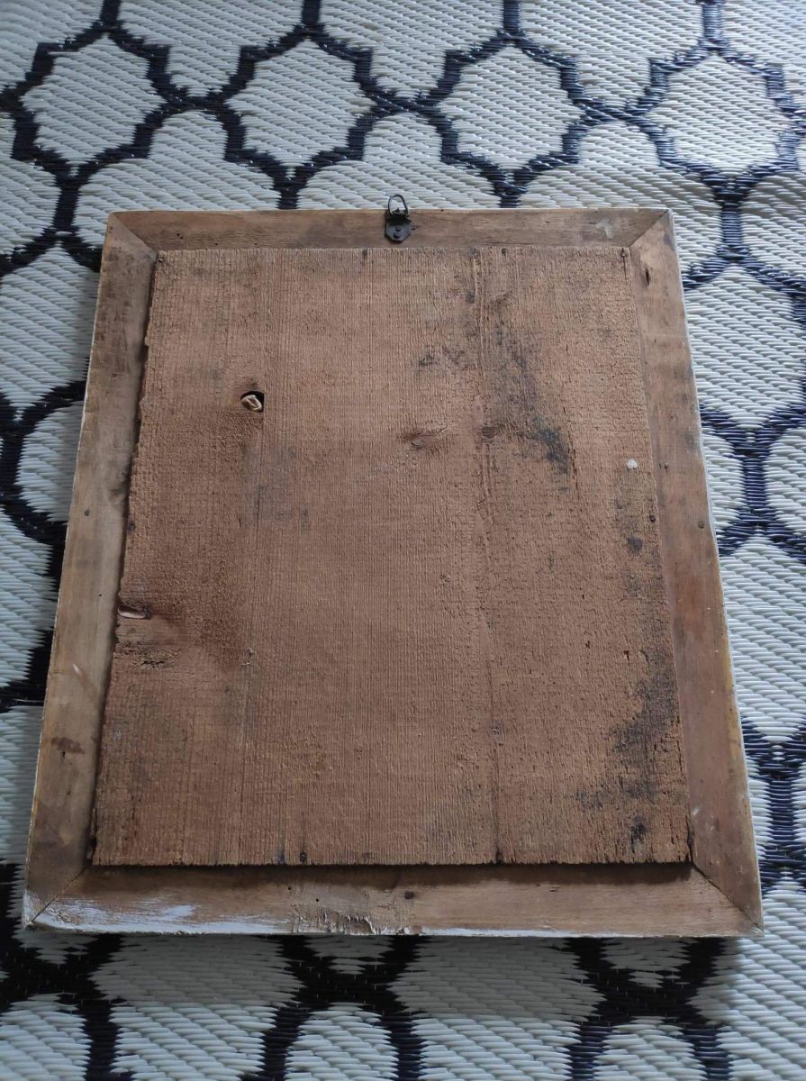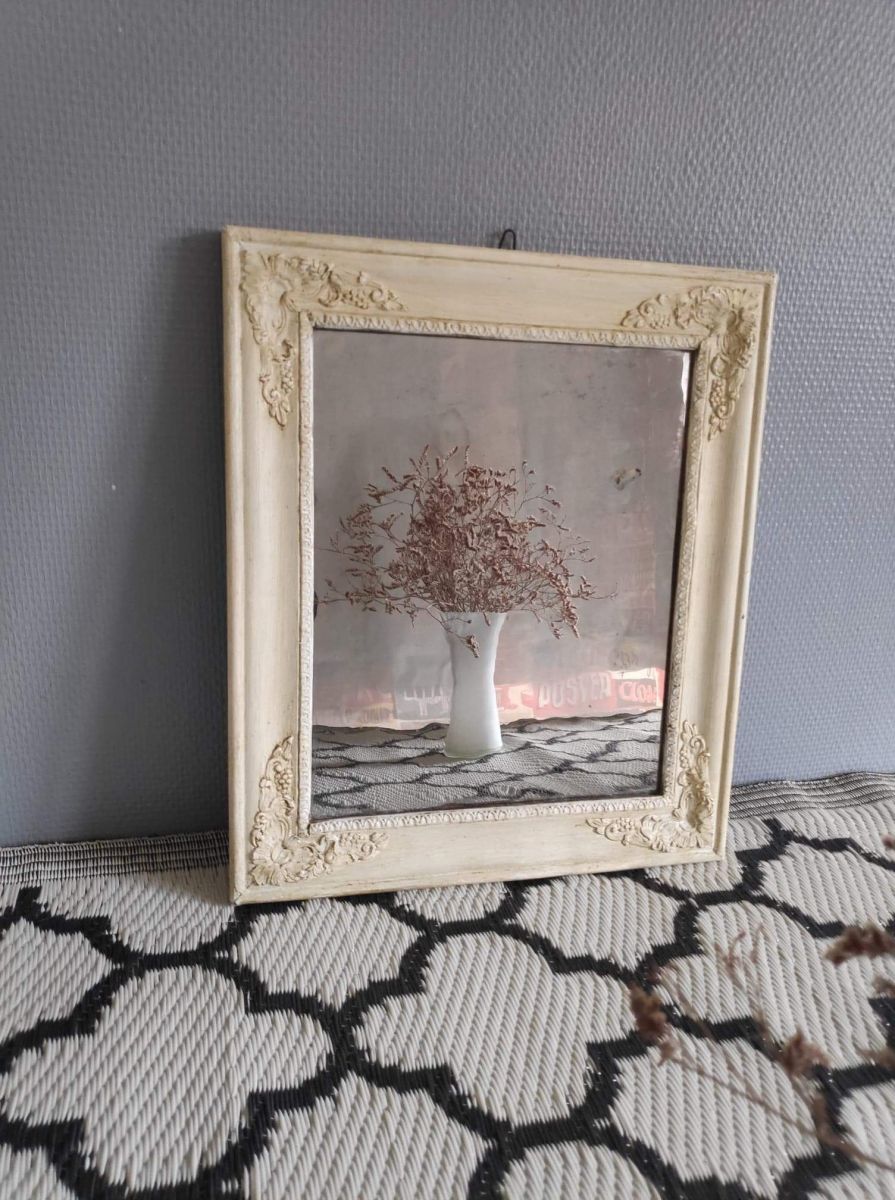 miroir ancien au mercure avec cadre en bois peint et arrière avec plaque bois et un crochet