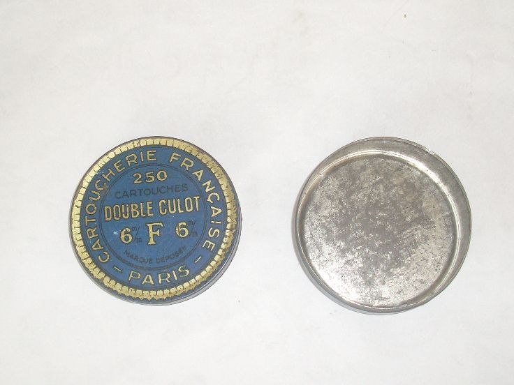 Boite métal ronde de diamètre 8 cm. Cartoucherie Française Paris.