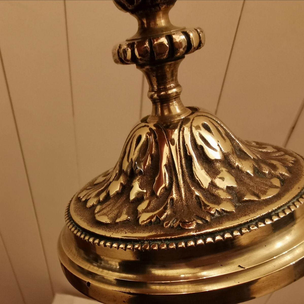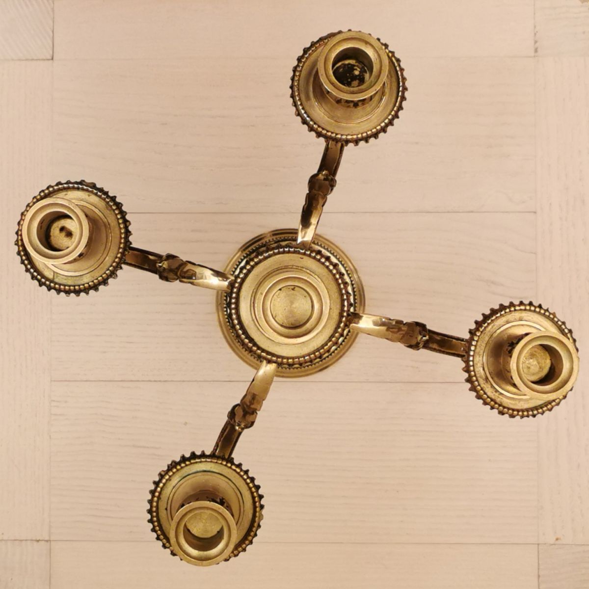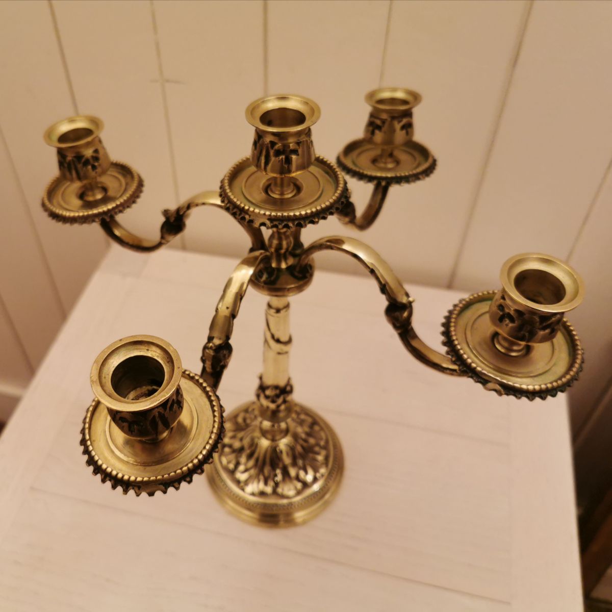 Le chandelier 5 branches a été nettoyé et poli pour lui redonner tout son éclat et sa brillance. Sur une cheminée, une table pour un dîner au chandelles. Le chandelier est livré avec des bougies blanches pour que vous puissiez vous en servir dès la livraison ! Dimensions largeur socle 10 cm, H 29,5 P 29
