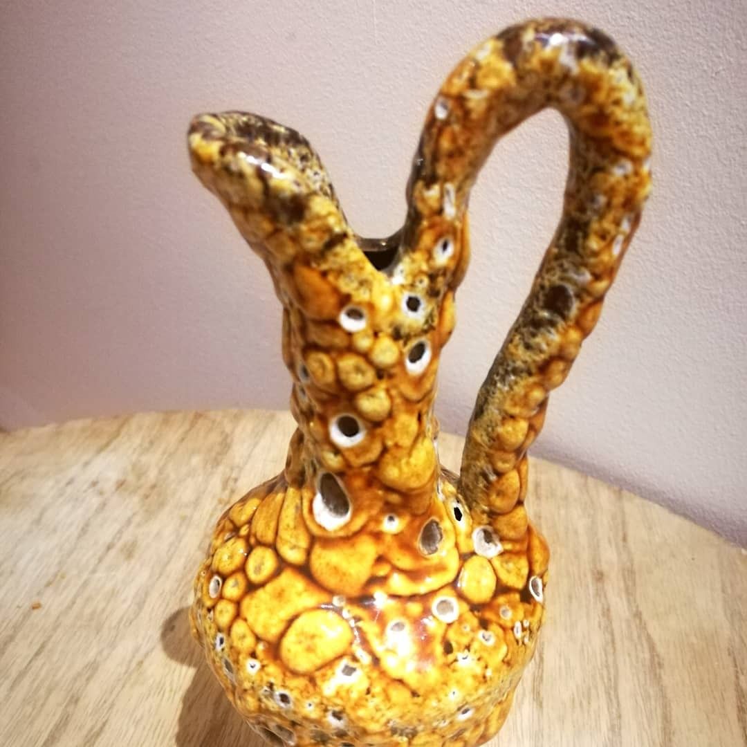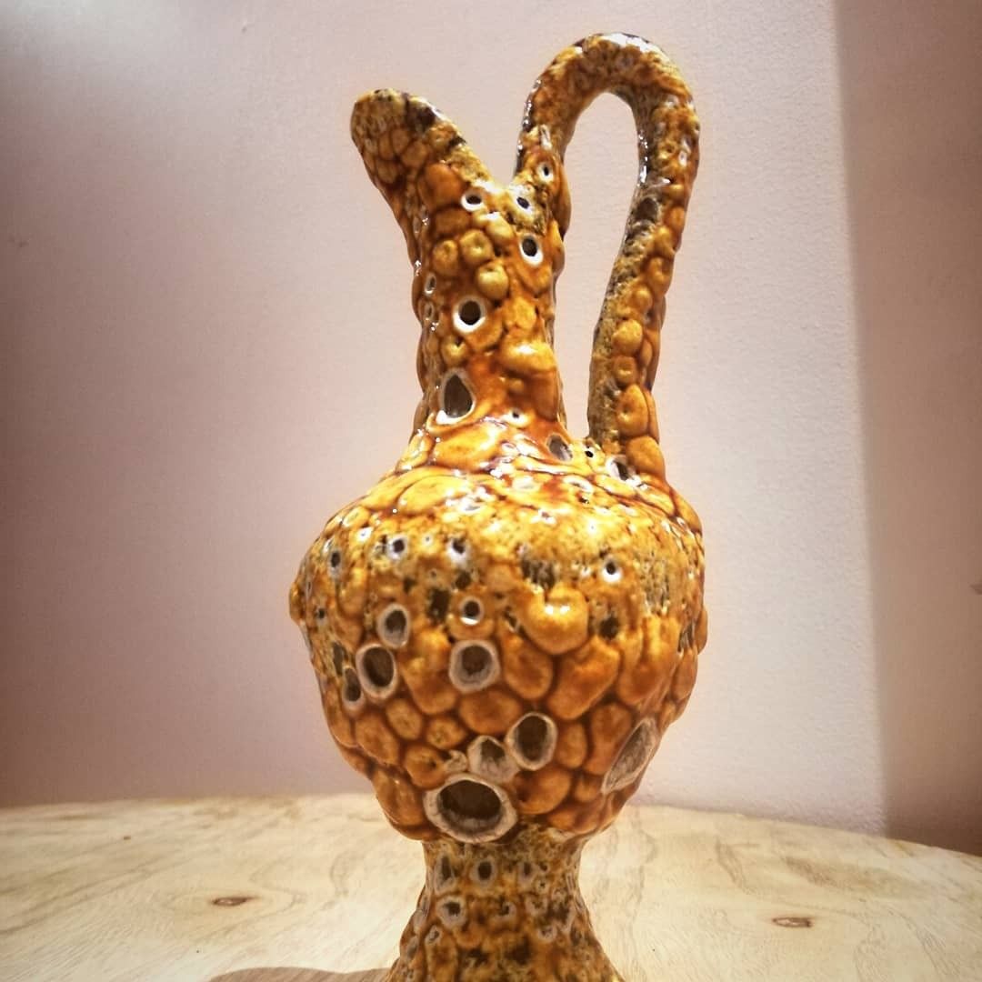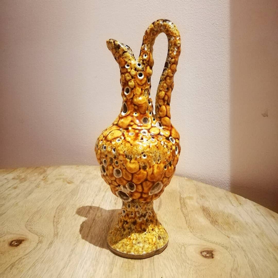 Joli vase aiguière en Grès de couleur moutarde imitation VALLAURIS d'une contenance de 20cl.