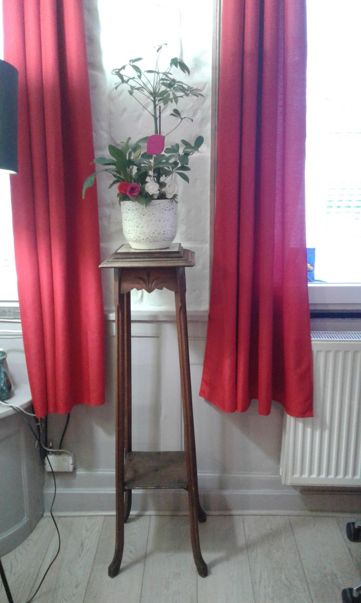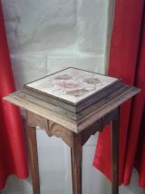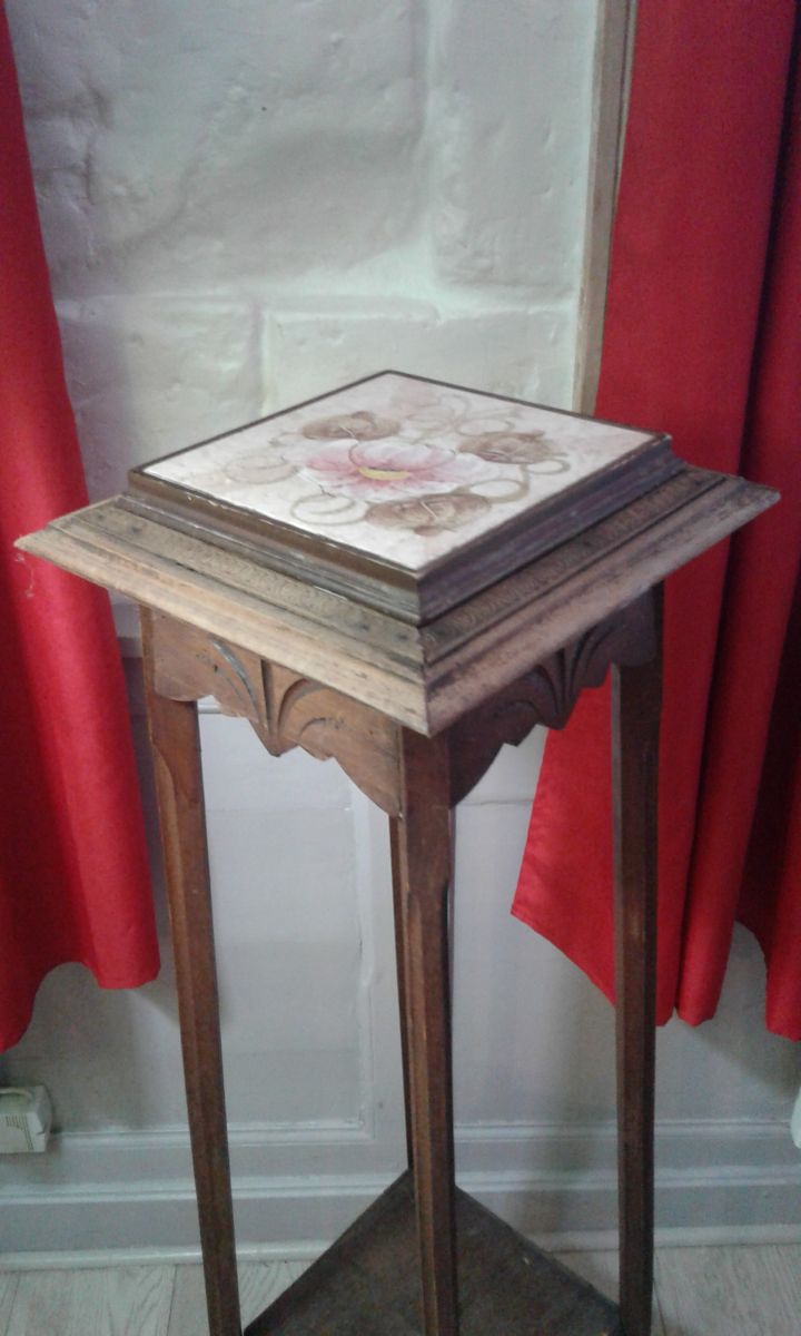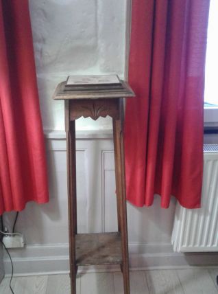 Sellette en bois Art nouveau à deux niveau à décor sculpté le plateau n est pas d origine il se remplace facilement sont état est corect voir trace d usure.