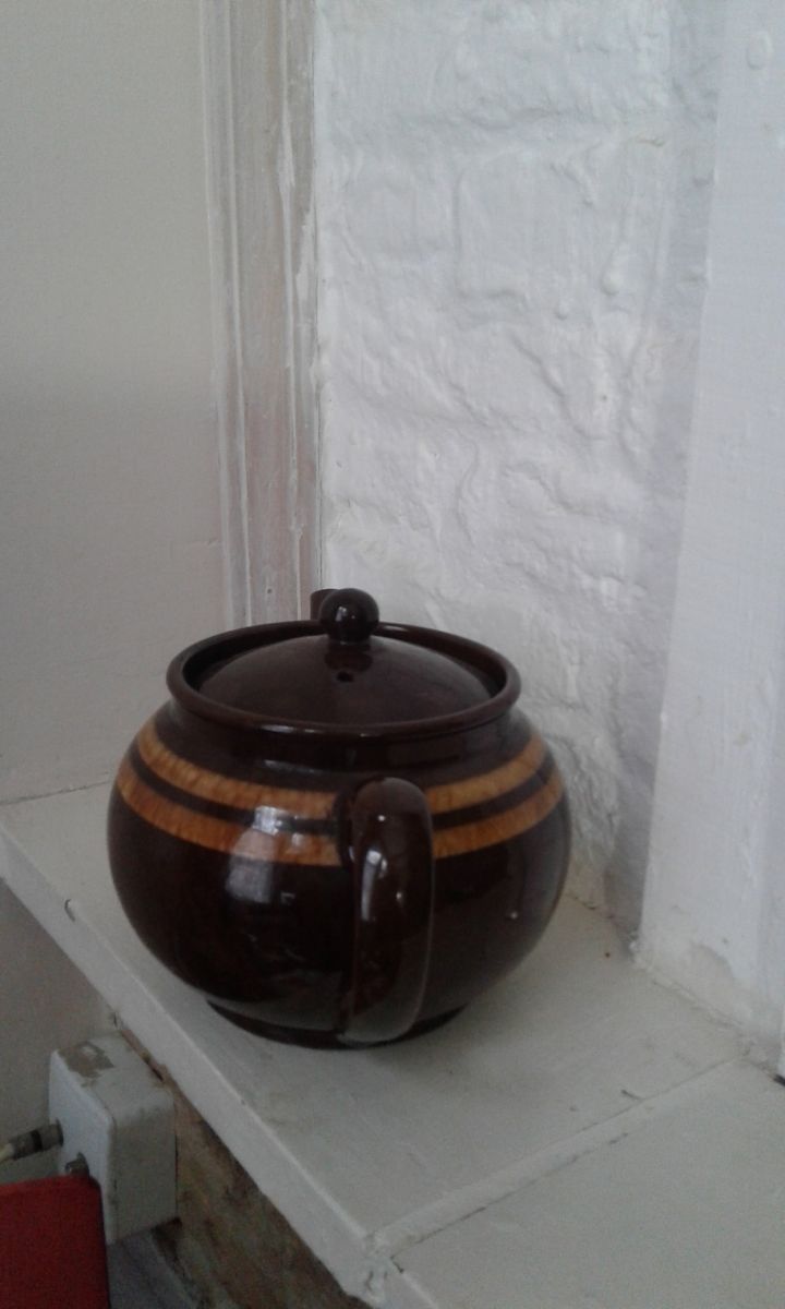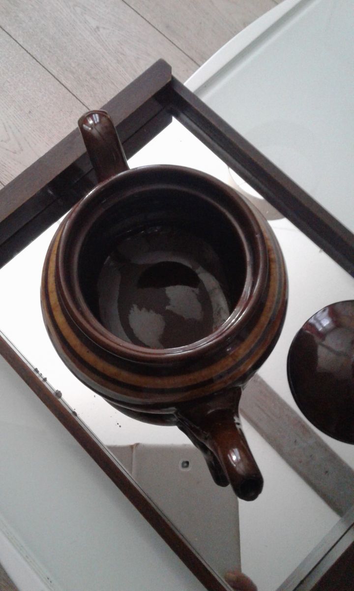 Théière en ceramique année 70 , elle est en bon état elle mesure 50 cm de diamètre 'ce modele de théière a été vu dans le film la piscine quand Romy schneider prend son petit déjeuner au lit.